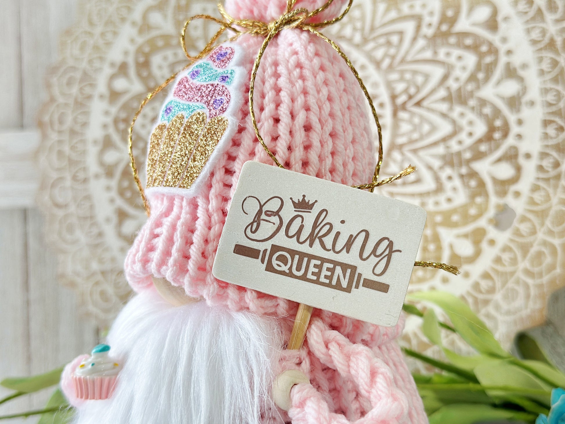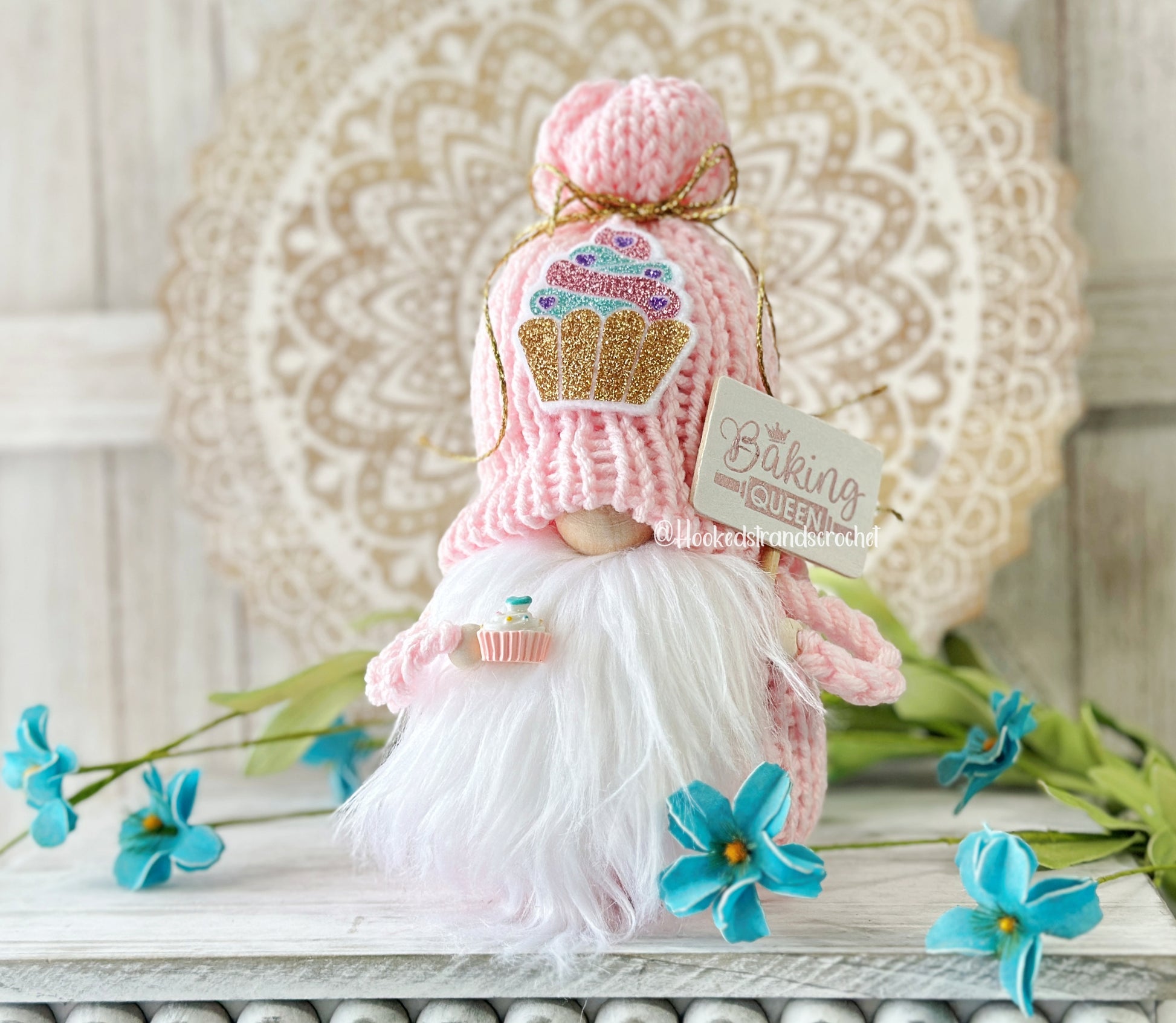 Adorable Baking Queen Cupcake Gnome for Tiered Trays - Handcrafted Crochet by Hooked Strands