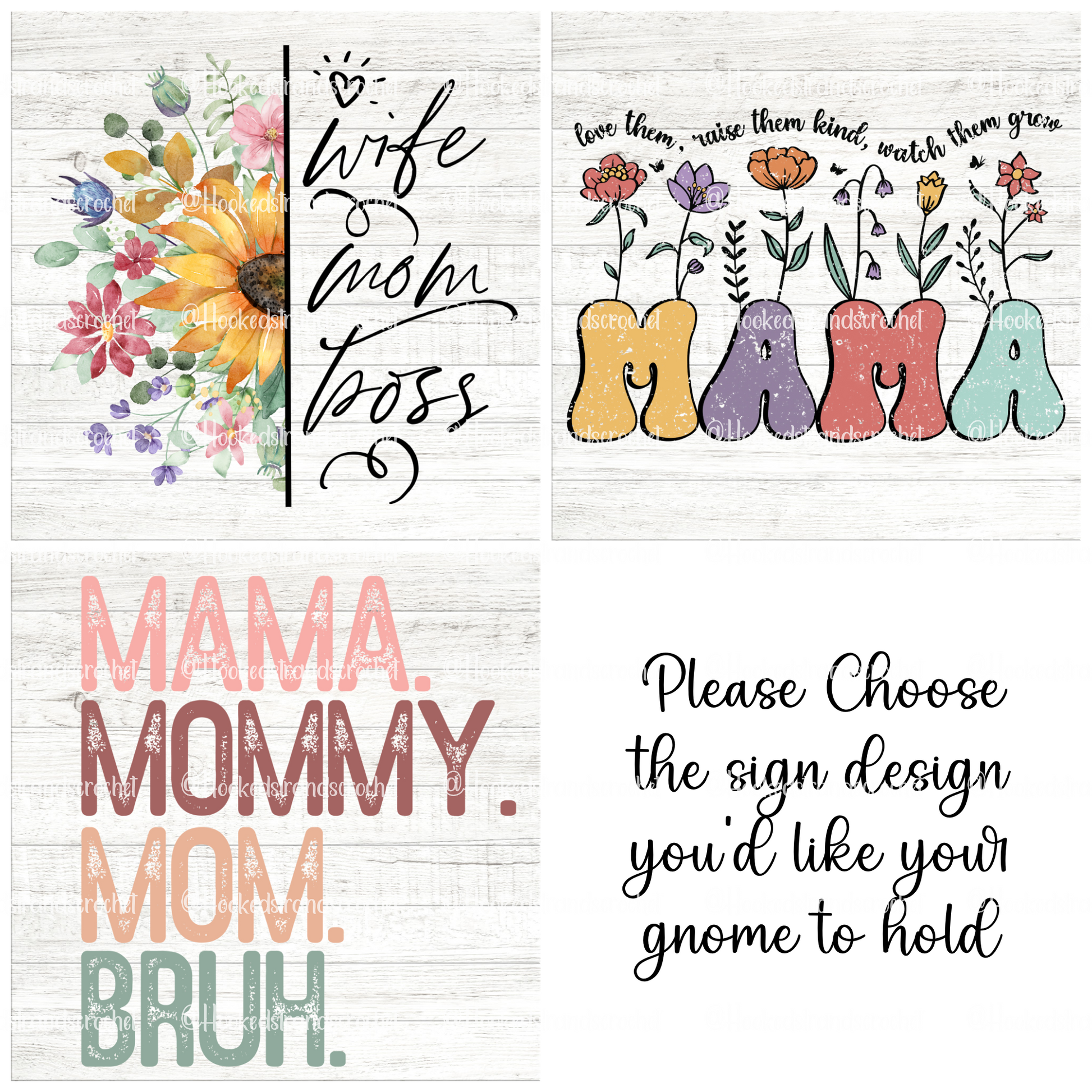 Adorable Mother's Day Gnome with Sign Choices - Perfect Tiered Tray Decor & Gift Idea by Hooked Strands Crochet