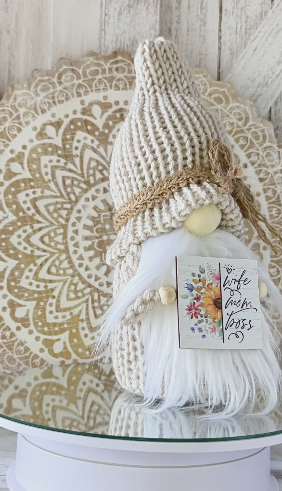 Celebrate Mother's Day in style with this adorable gnome set from Hooked Strands Crochet! This charming gnome comes with a choice of three signs, allowing you to customize your Tiered tray decor to suit your mom's personality. This delightful gnome makes the perfect gift idea to show your mom how special she is. Handcrafted with love, this Mother's Day gnome will add a touch of whimsy and joy to any space. Make this Mother's Day memorable with this lovely creation from Hooked Strands Crochet!