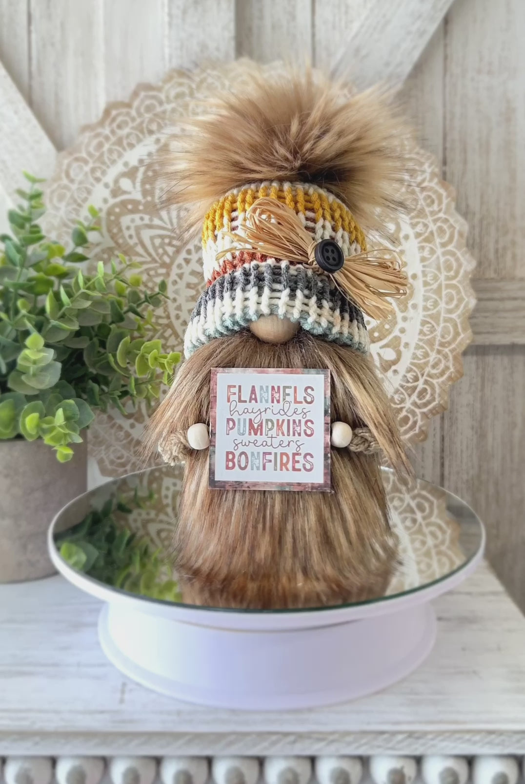 Adorable Striped Hat Gnome with Fall Sign - Perfect Tiered Tray Decoration for Autumn