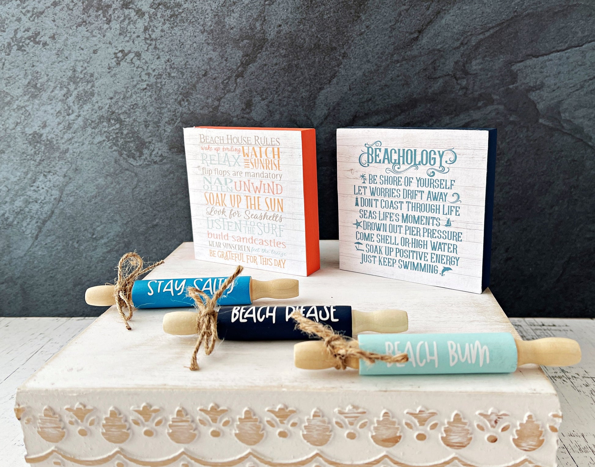 Choose a 4" sign or the set of 7" beach rolling pins.