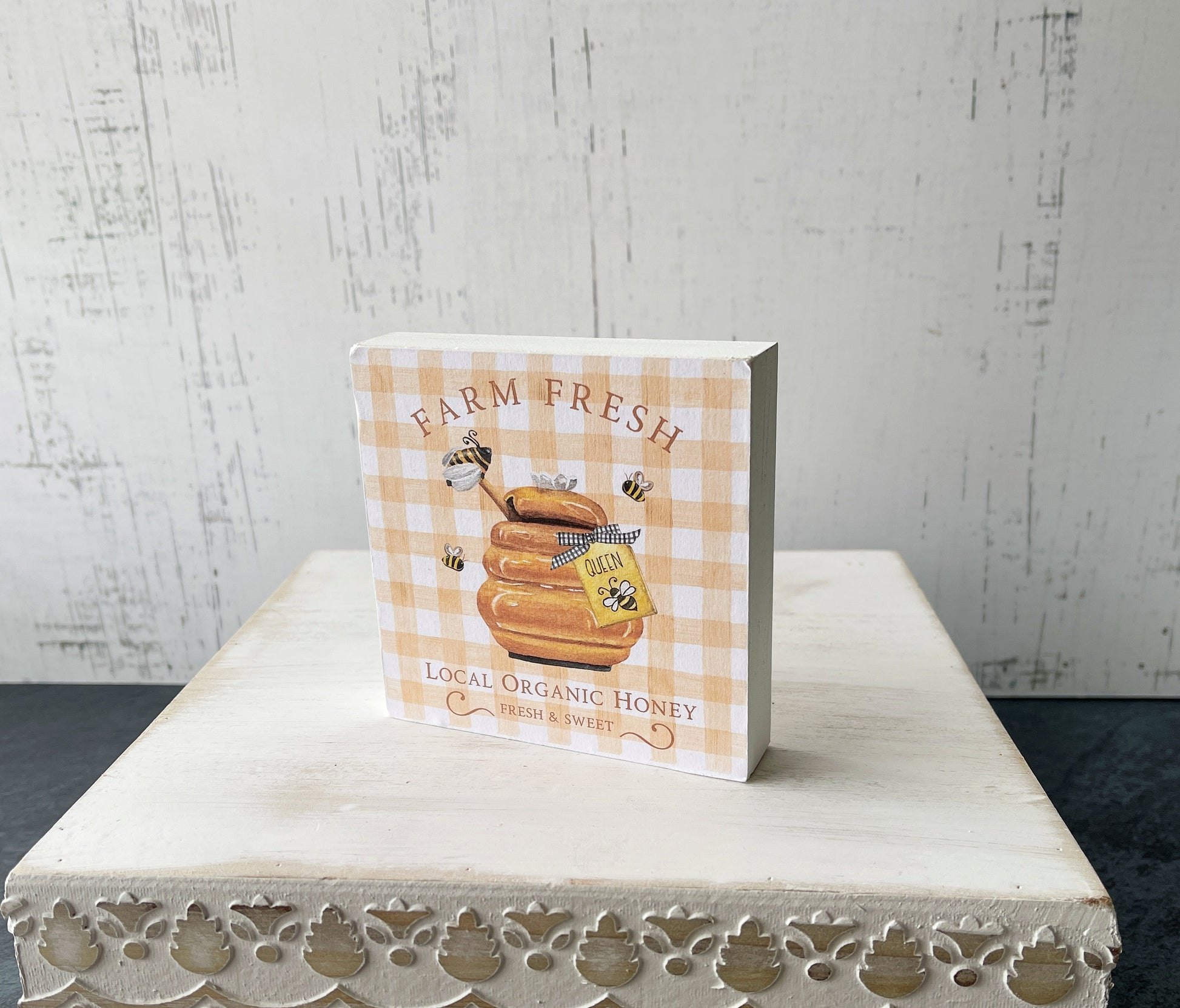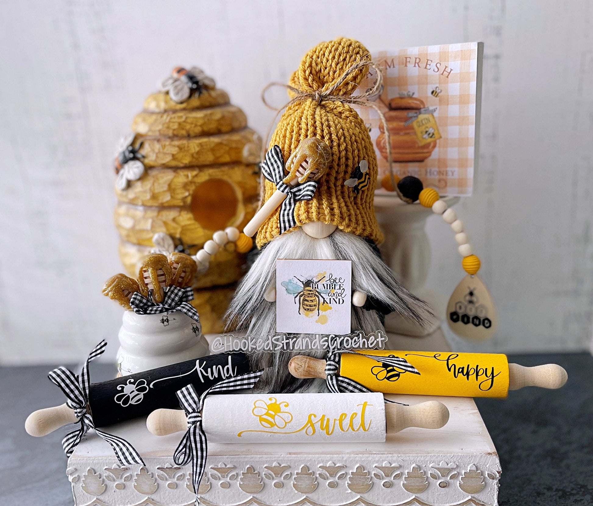 Bee-u-tiful knit honeybee gnome with sign - Decorative rolling pins - Tiered tray decor set