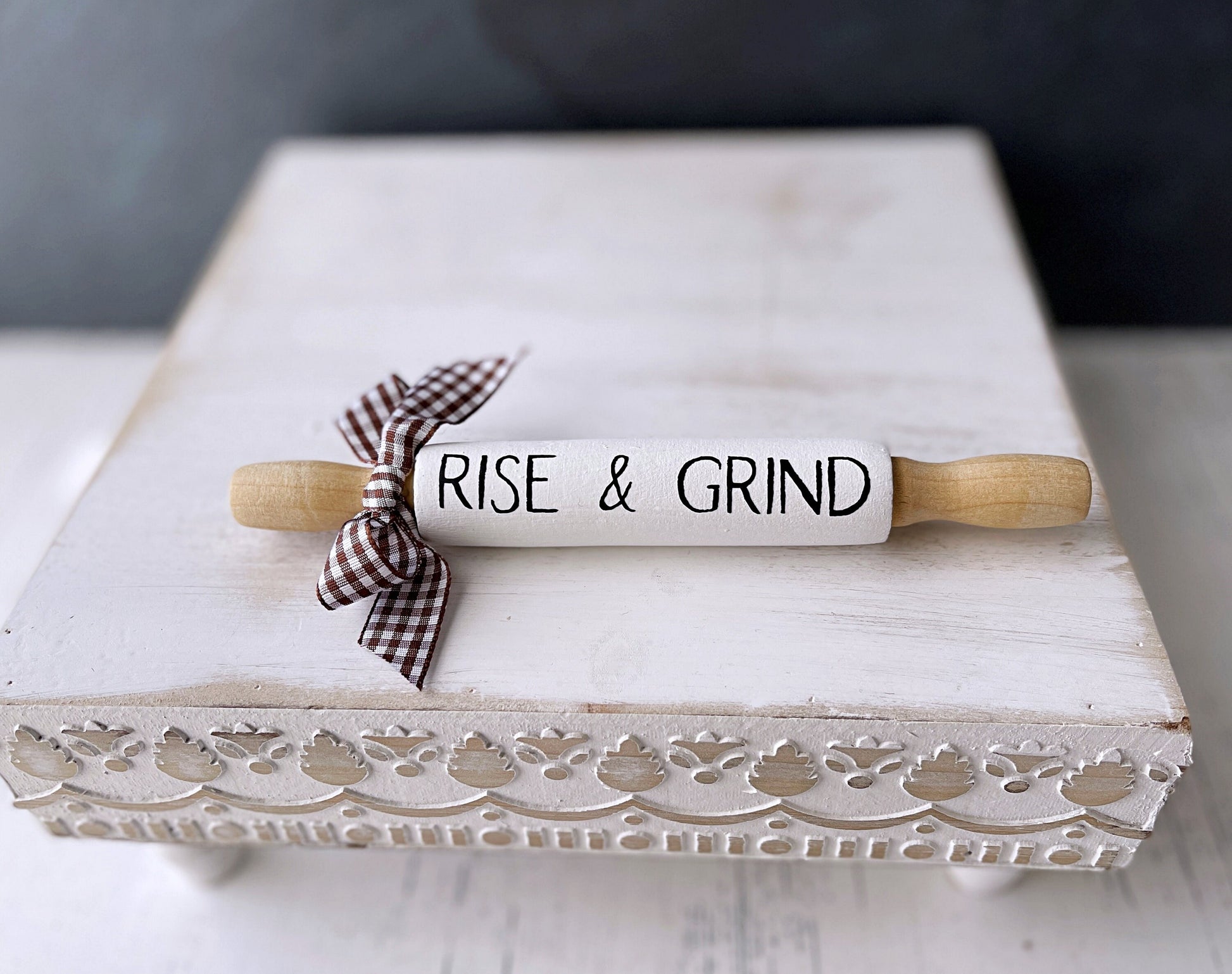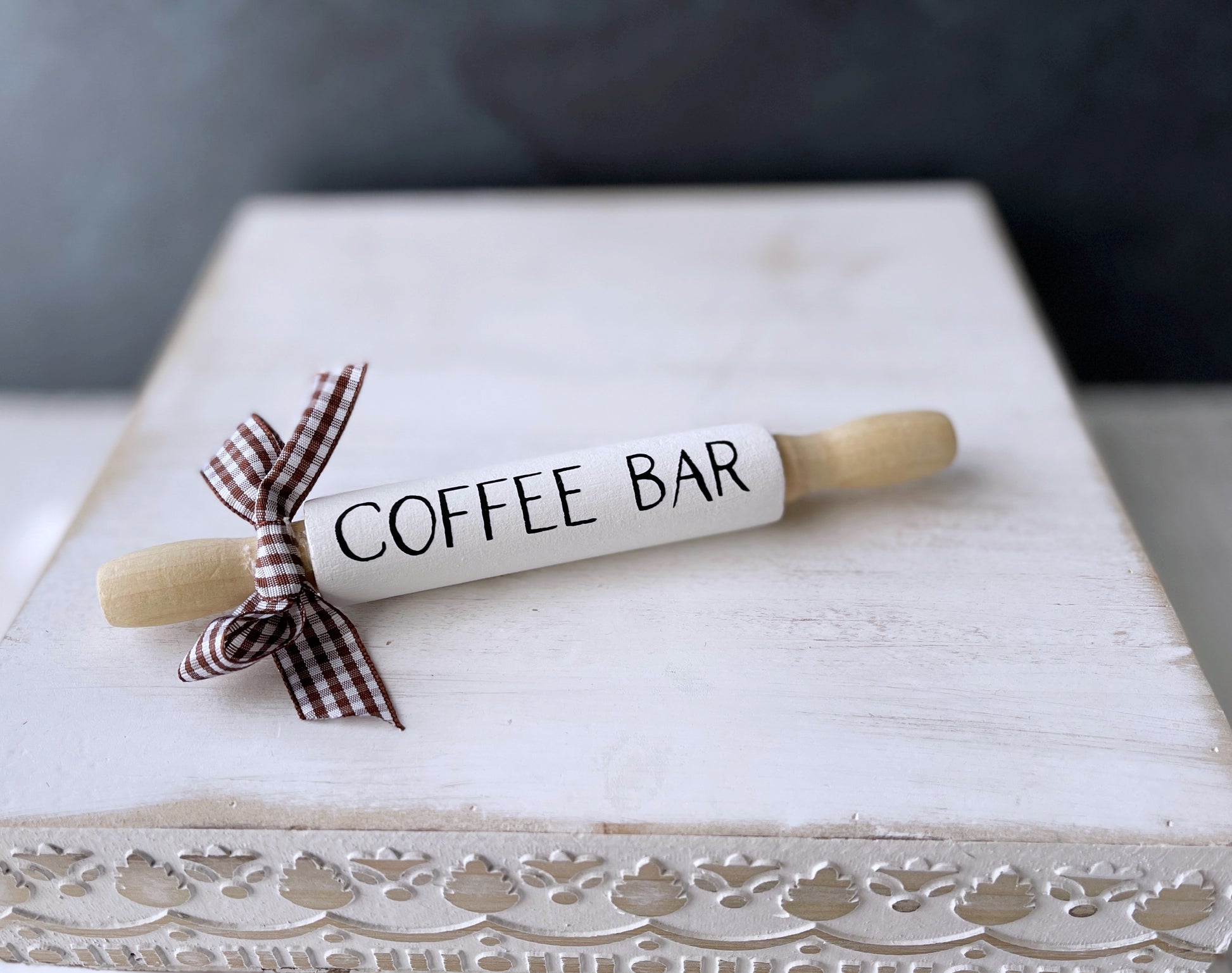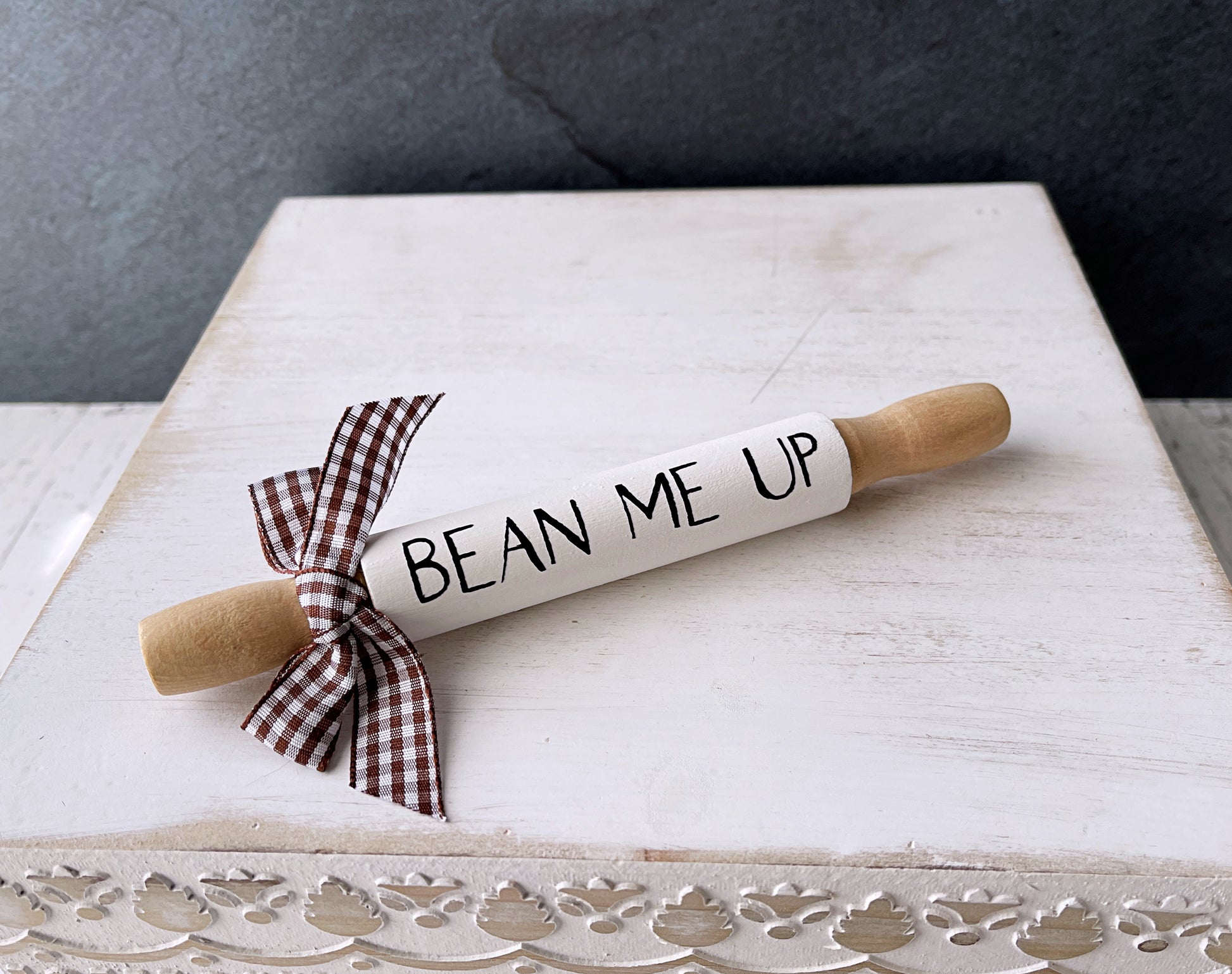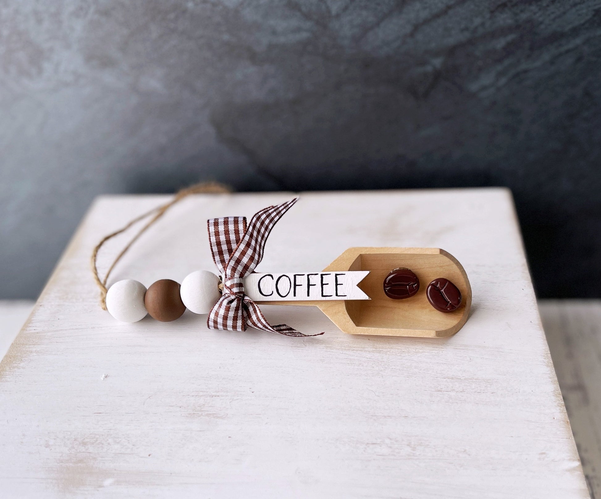 Brew up some charm with this delightful coffee gnome for your tiered tray decor! This happy-go-lucky farmhouse gnome is the perfect gift for any coffee lover that wants to add some fun and whimsy to their kitchen decor. Gnometastic!