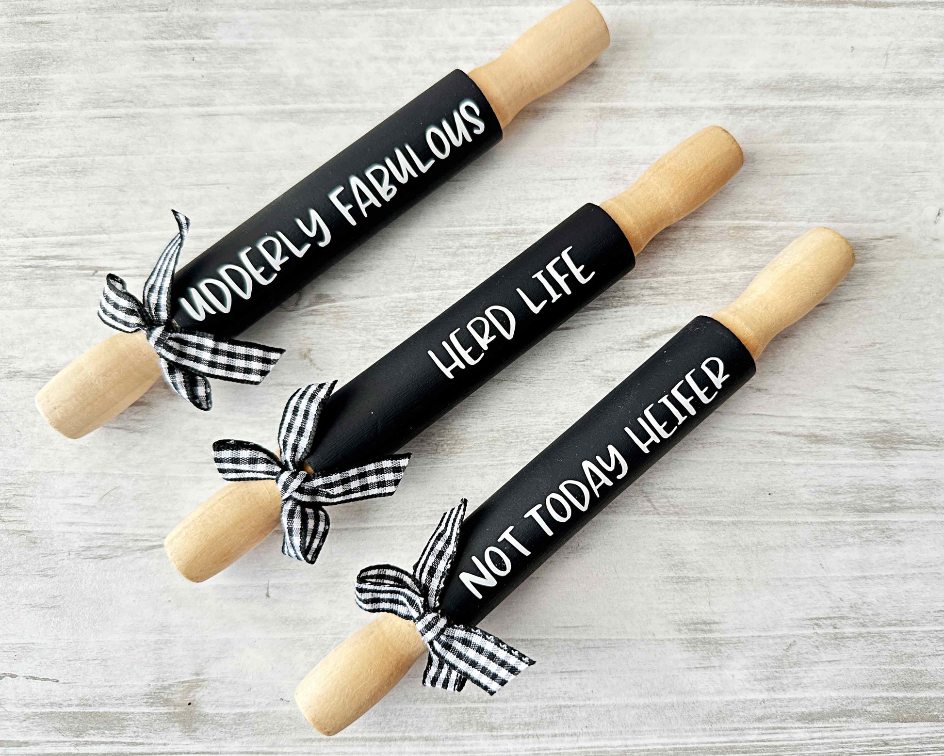 🐄Rolling pins - Measure 7" in length. Comes in three word choices with black and white bows