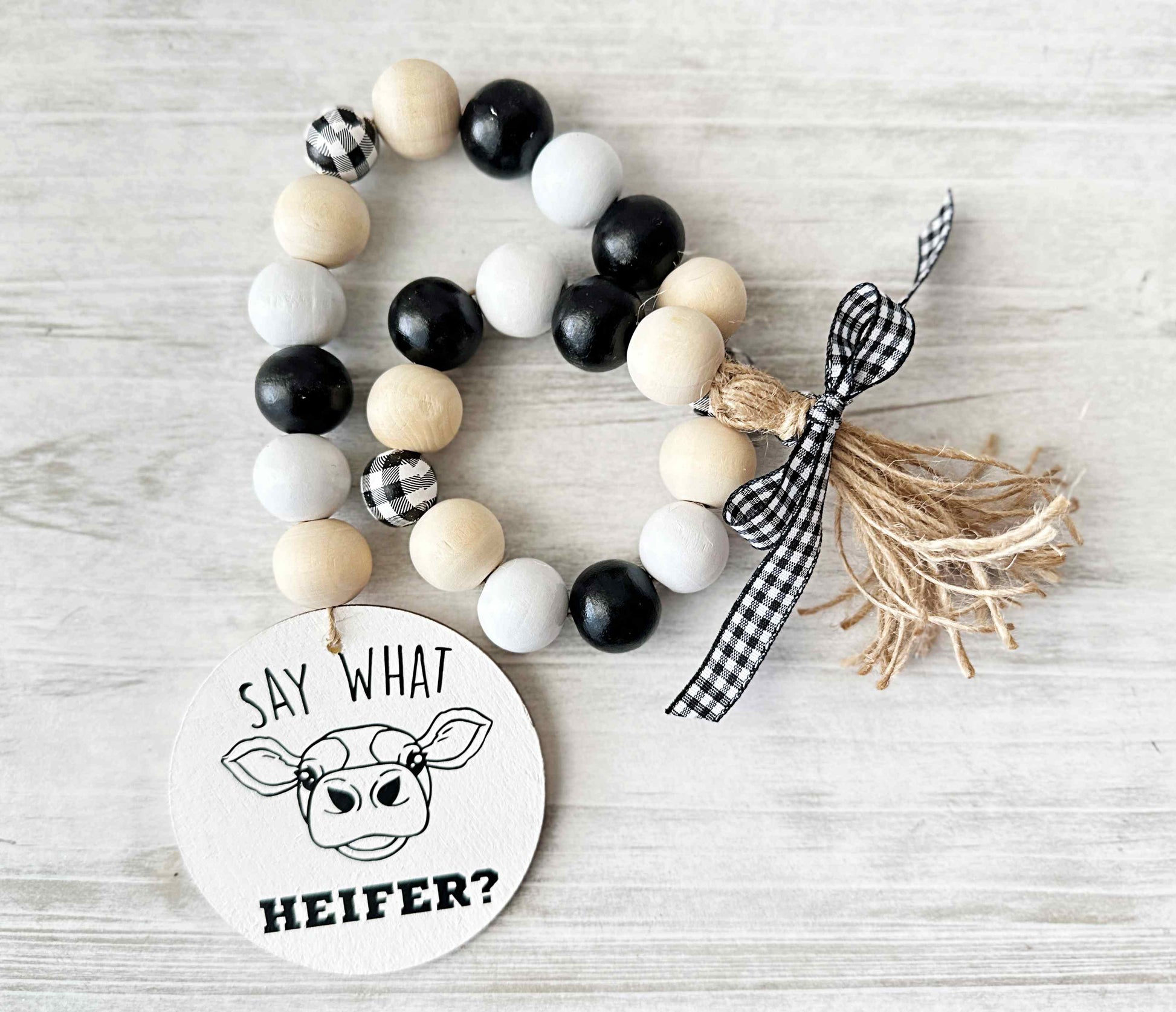 🐮 Wood bead garland - measures 22" long from tassel end to sign end