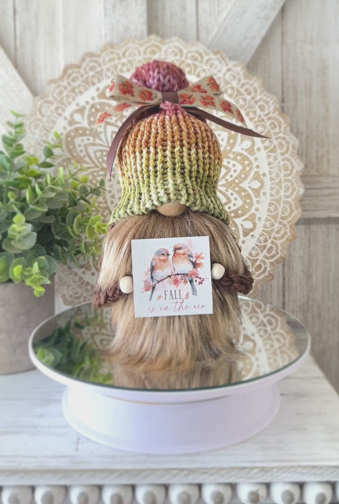 Add a touch of Autumn charm to your home decor with this adorable Autumn Leaves gnome holding a Fall sign. This whimsical gnome is the perfect addition to your tiered tray decor, bringing a cozy and festive vibe to any room. Handcrafted with attention to detail, this Fall gnome is sure to delight and bring a smile to your face every time you see it. Whether displayed on a shelf, mantel, or tiered tray, this cute gnome is a must-have for your Fall decorations.