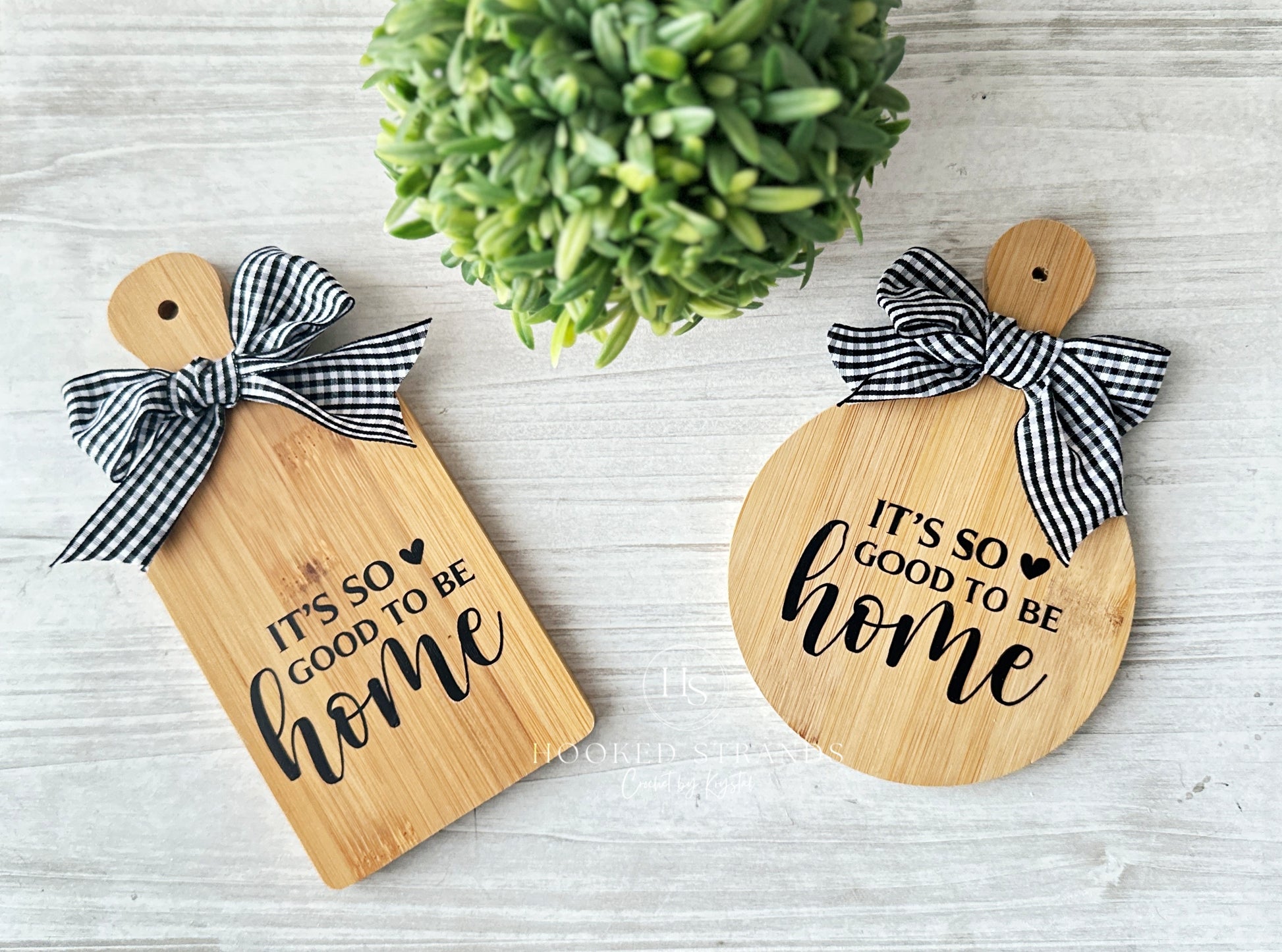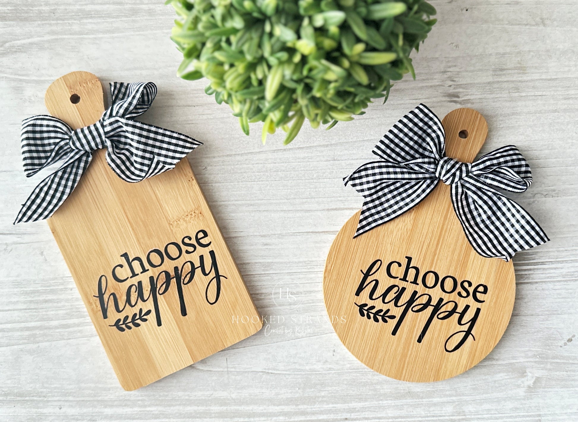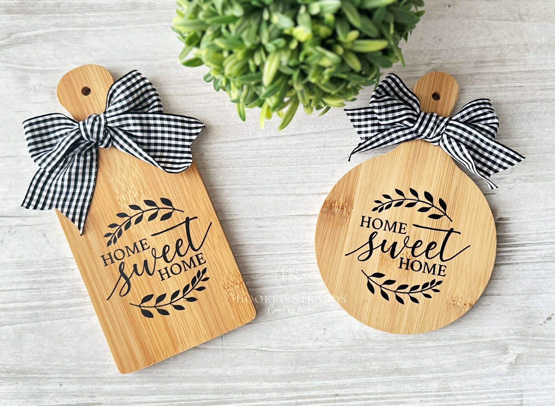 These mini charcuterie boards are a cute addition to your farmhouse decor. You can use the decorative cutting board as tiered tray decor or hang on a kitchen wall. Choose either round or rectangle board style and your choice of 8 designs.