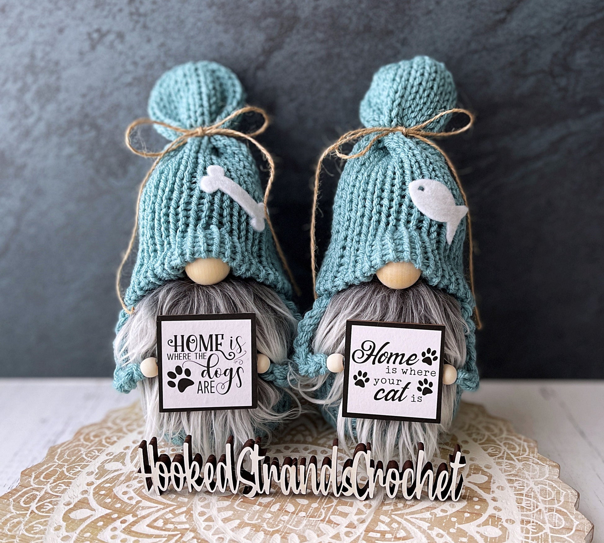 Dog lover gnome, Cat lover gnome, Pet lover gnome, Tiered tray decor, Pet decor, Gift idea, Gonk doll, Knit gnome, Farmhouse decor,