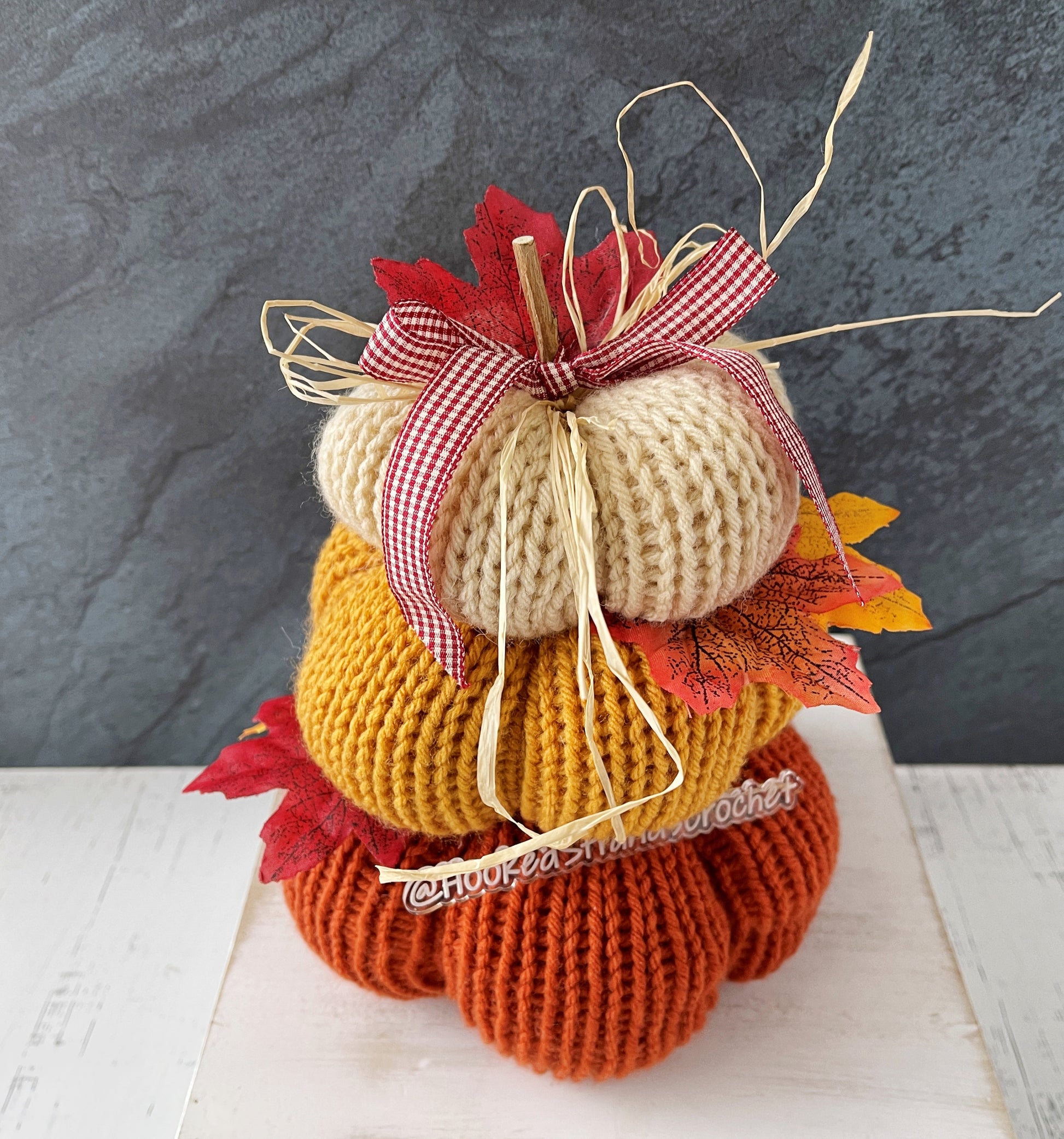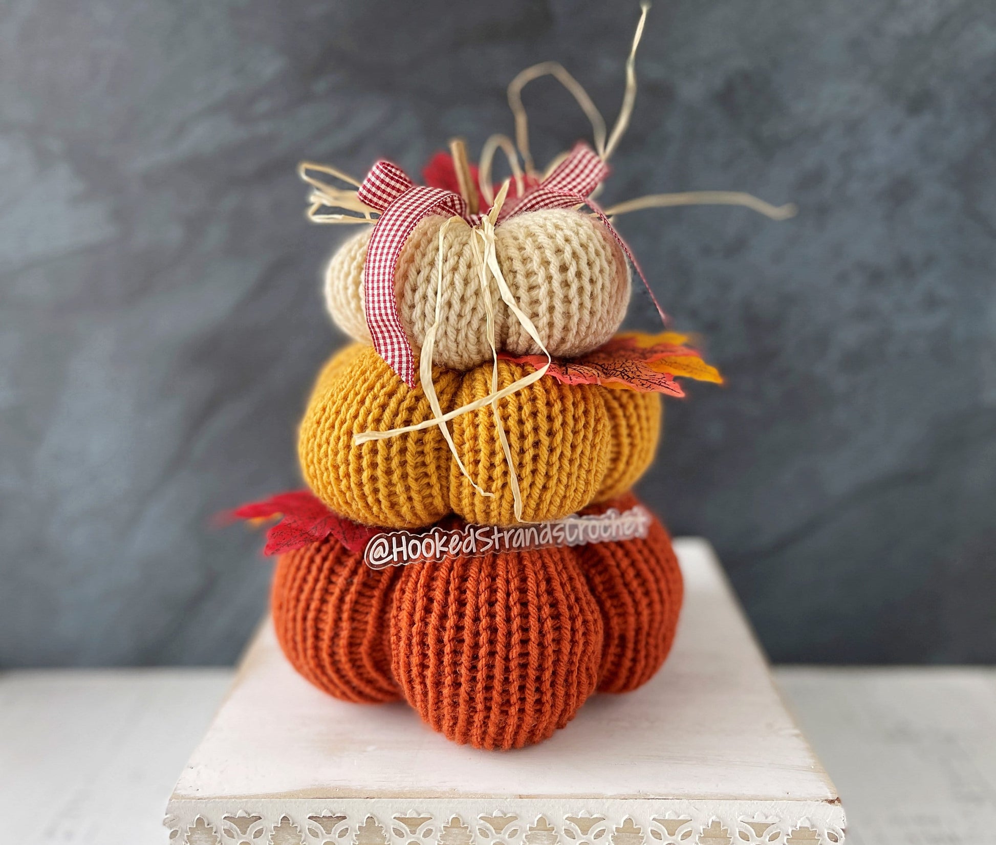 Rustic Fall Pumpkin Stack - Knit Pumpkins for Autumn Decor - Table Top Display - Tiered Tray Decor