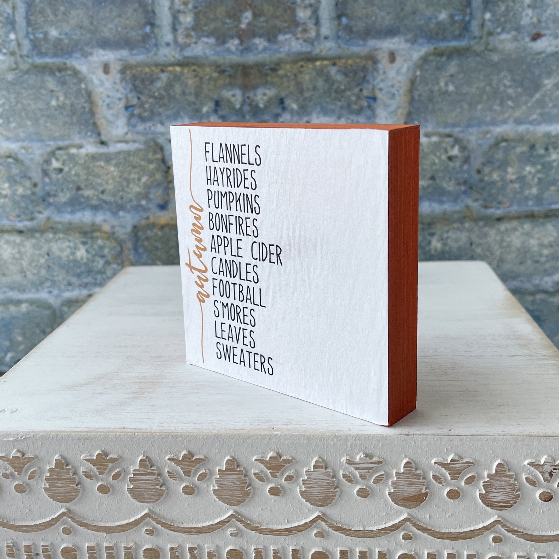 Welcome the season of falling leaves with this charming fall sign, perfect for adding some autumnal flair to your tiered tray decor or table top displays. Don't wait for the trees to shed, to get your hands on this delightful decor today!