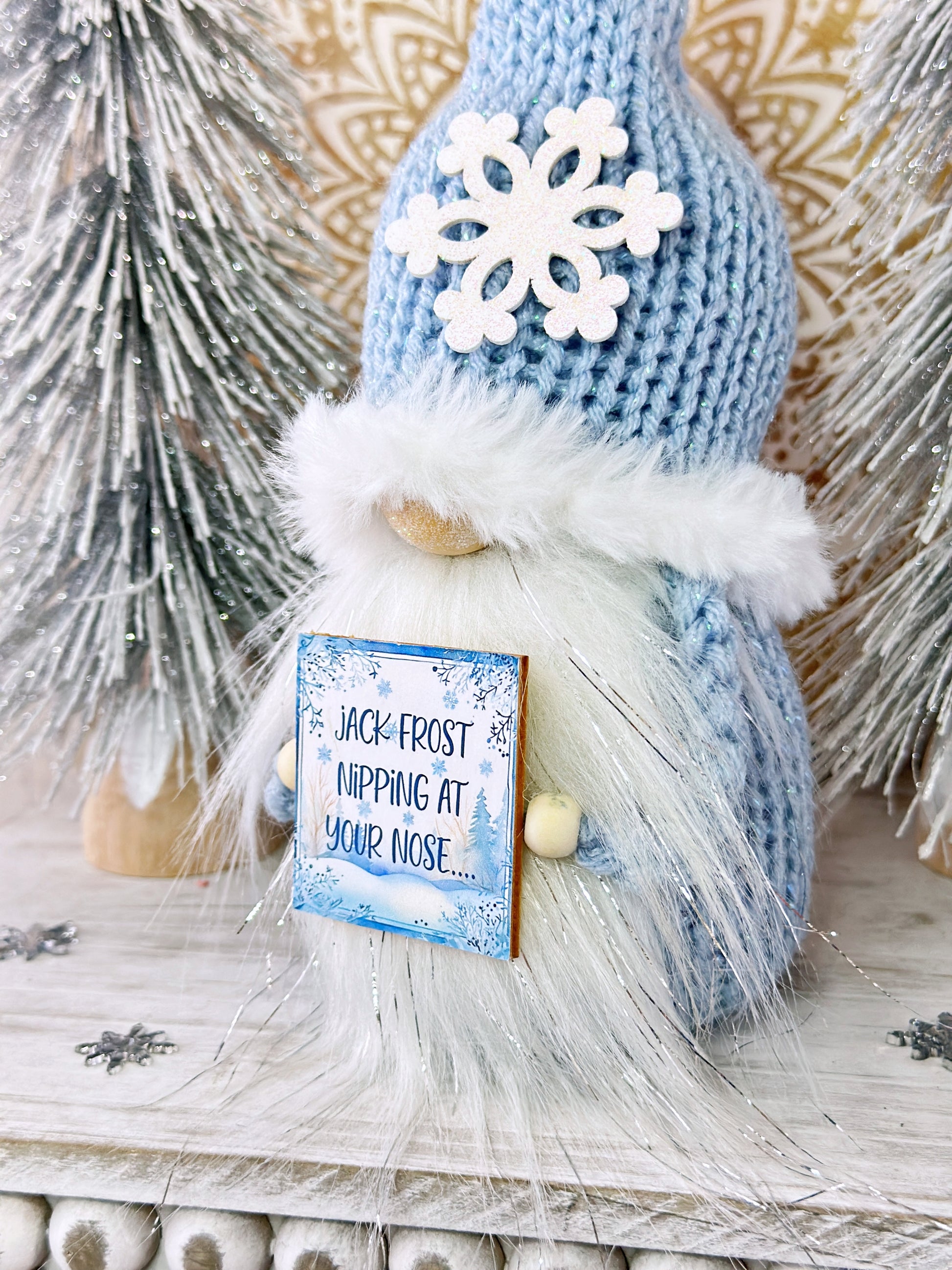 Festive Jack Frost Gnome for Tiered Trays - Unique Christmas Decor by Hooked Strands Crochet - Winter Wonderland Vibe