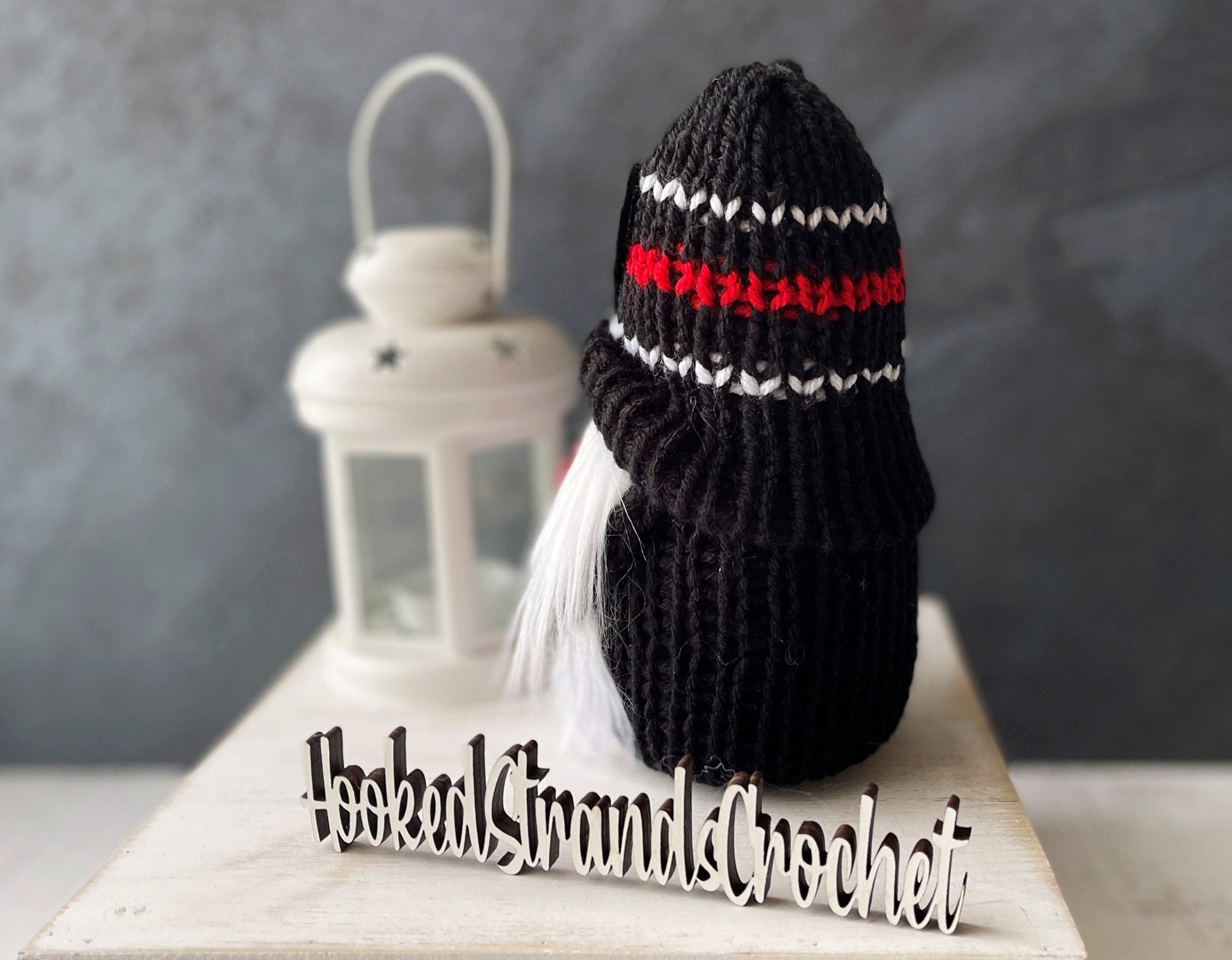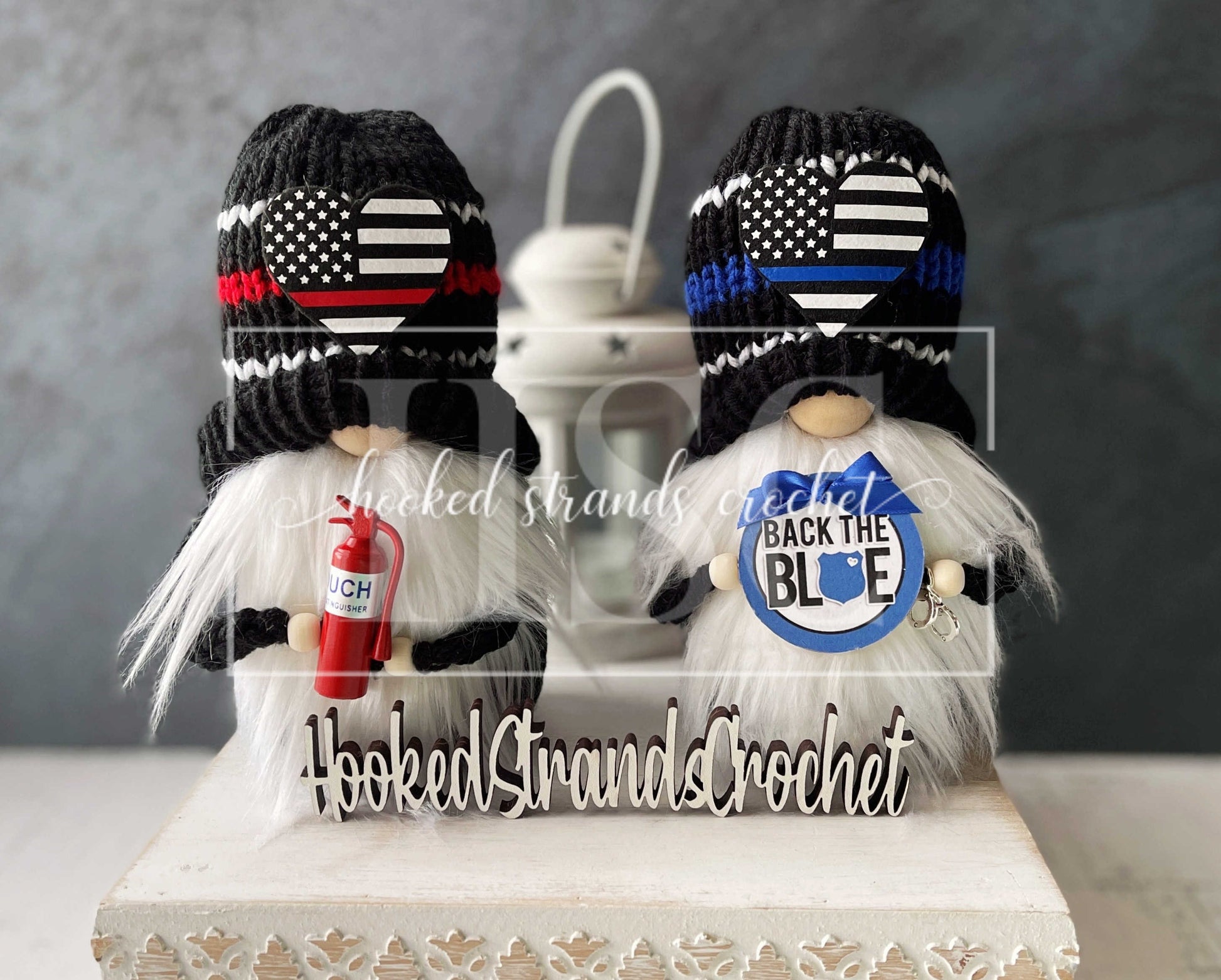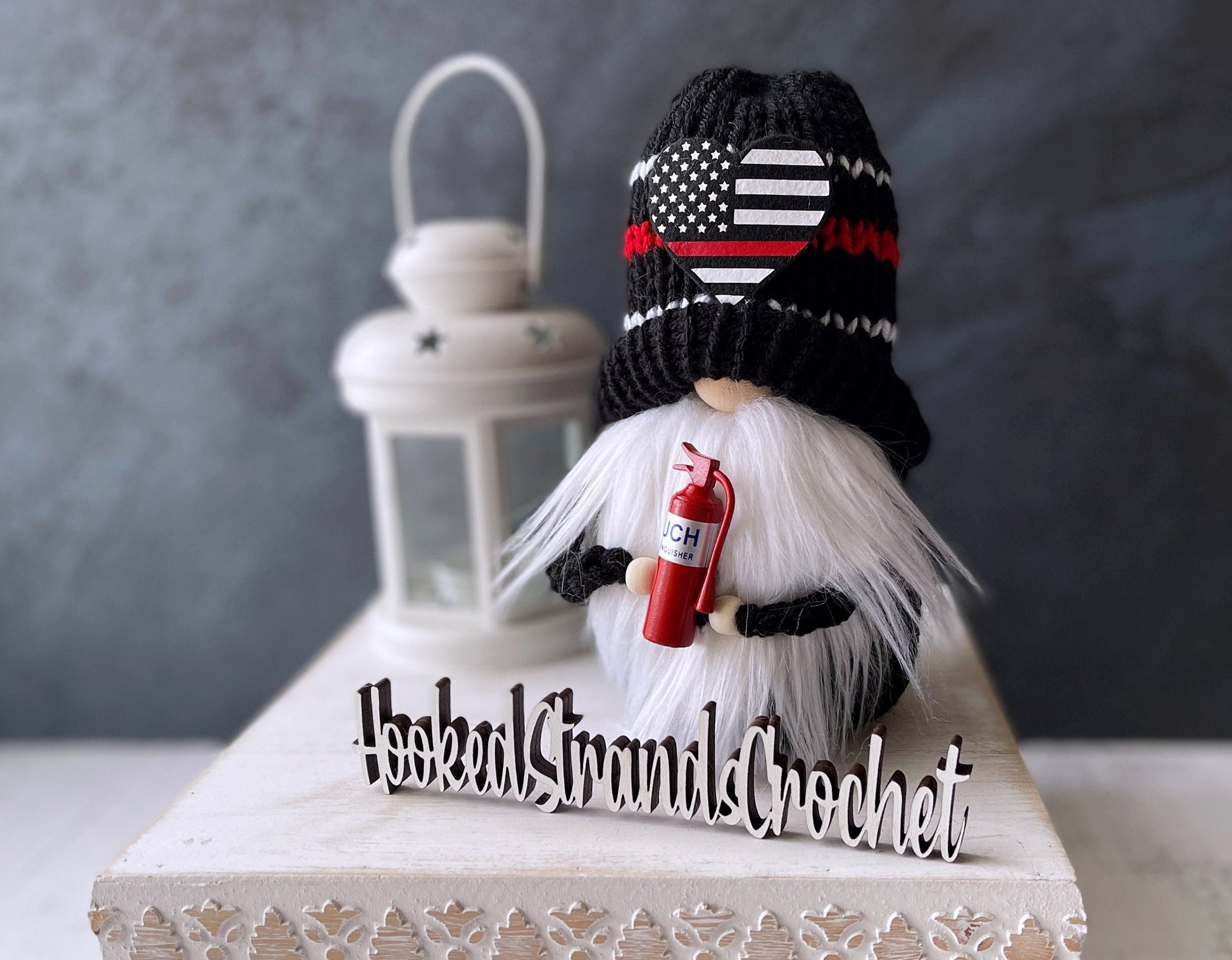 Firefighter gnome, First responder gnome, Tiered tray decor, Thin red line decor, Hero gnome, Gift idea, Knit gnome