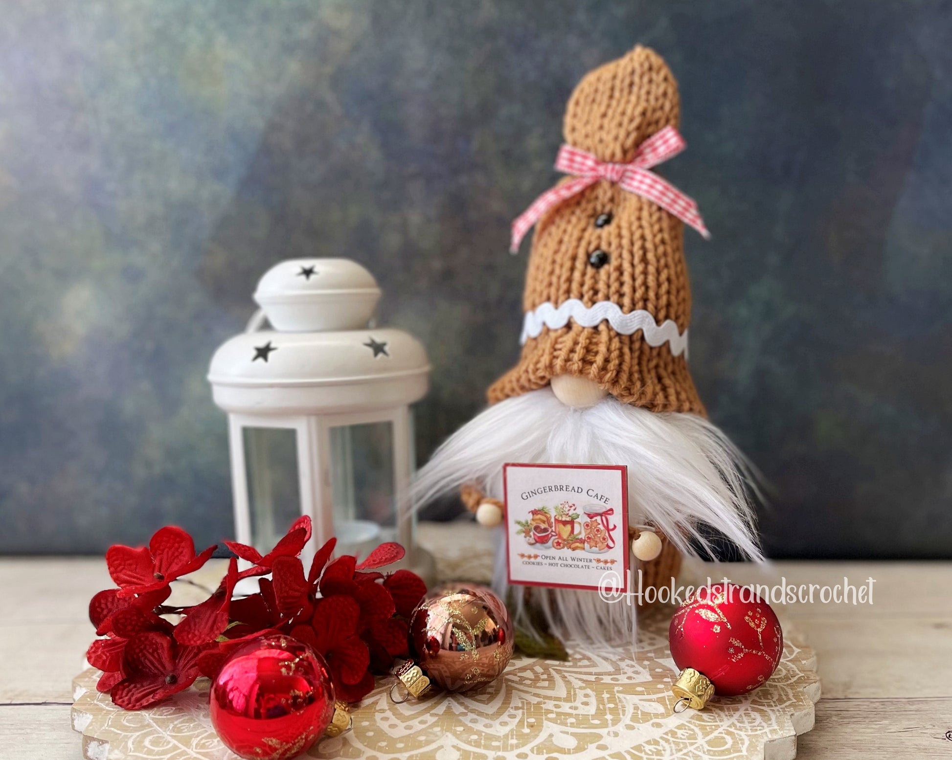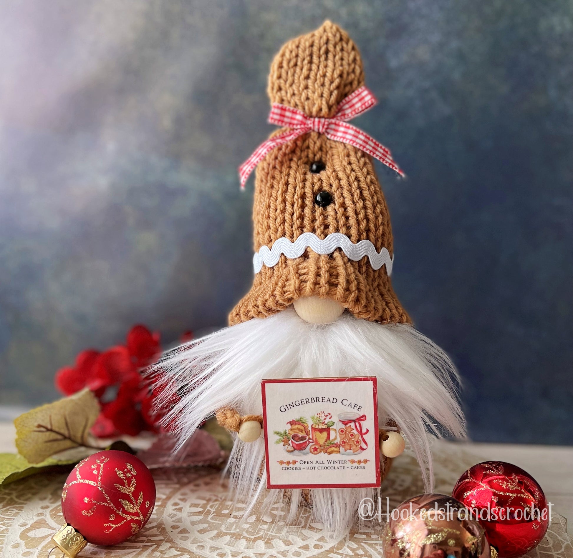Gingerbread gnome, Christmas gnome, Tiered tray decor, Farmhouse theme, Holiday decor, Knit gnome