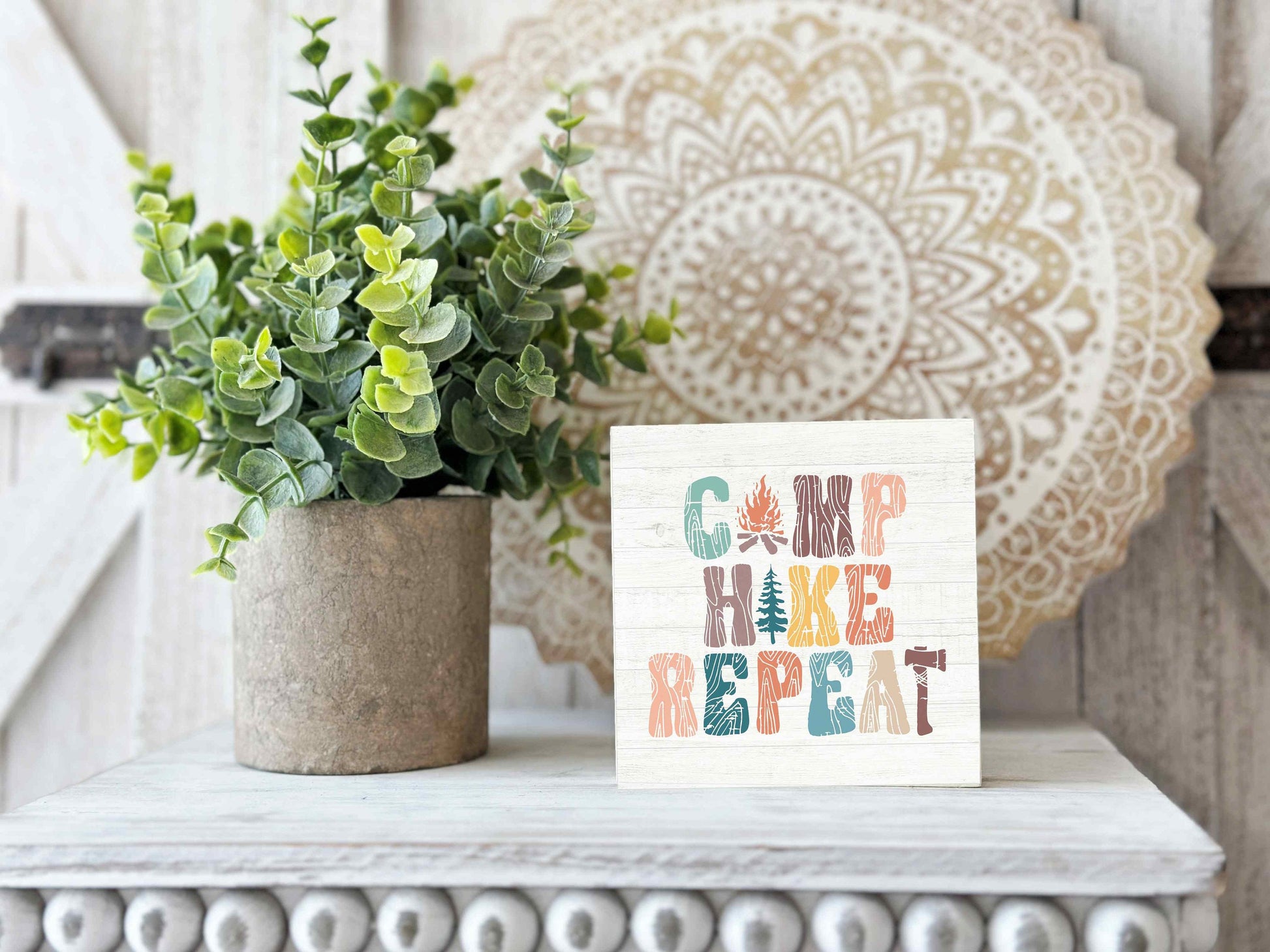 Bring some camping cheer to your home with this quirky Outdoorsy Knit Happy Camper Gnome! The playful knit gnome is ready for a night under the stars with his little marshmallow and ‘Happy Camper’ sign. A quirky addition to any tiered tray decor!