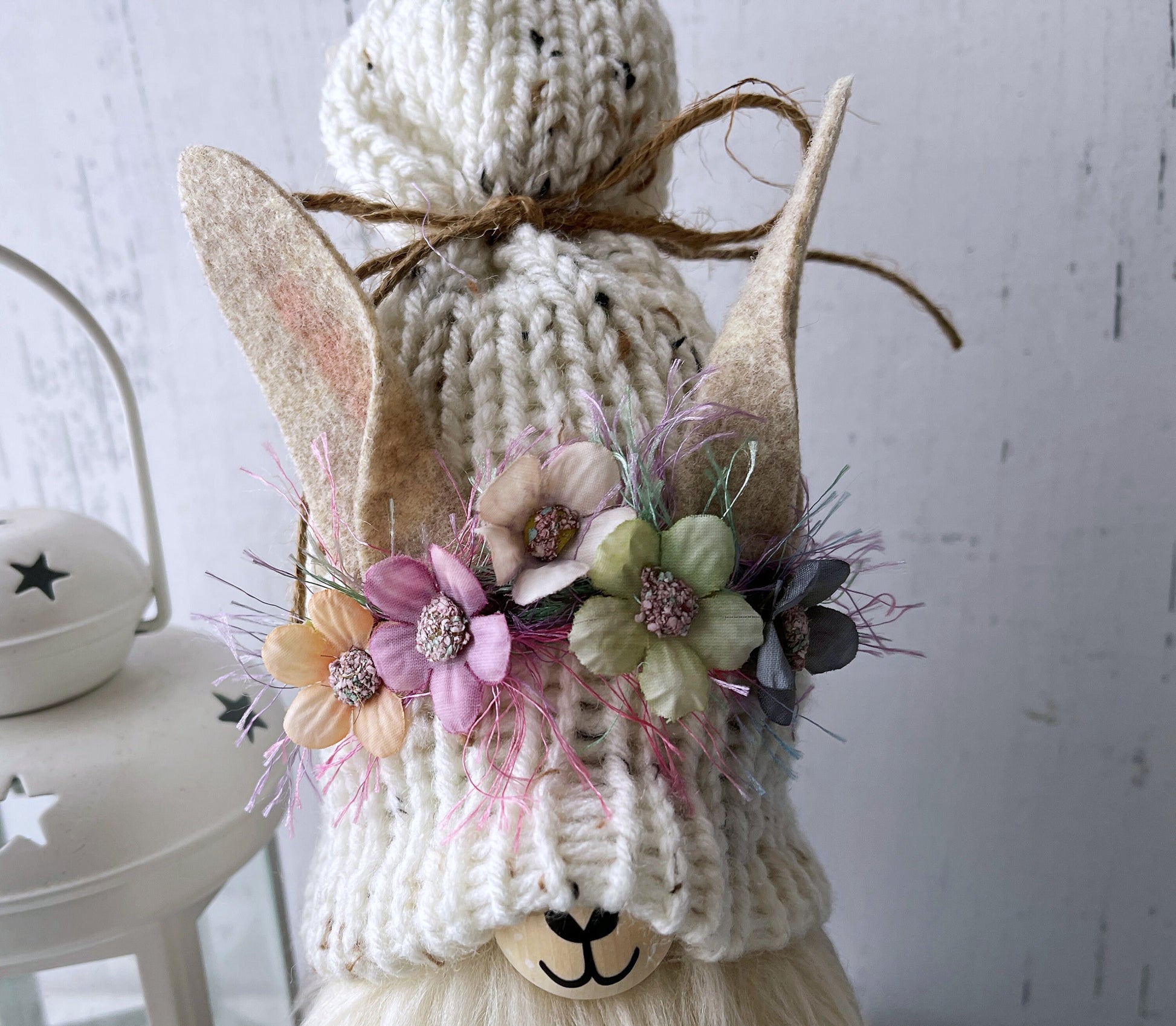 This Llama gnome is a beautiful way to add to your gnome decor or tiered tray. Each farmhouse gnome has a long-tailed stocking cap with a twine bow.