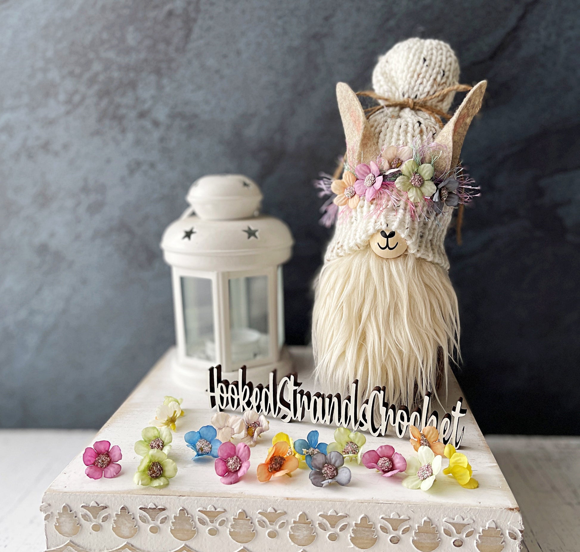 Llama gnome, Tiered tray decor, Farmhouse gnome, Rustic gnome, Gnome decor, Swedish tomte Knit gnome,