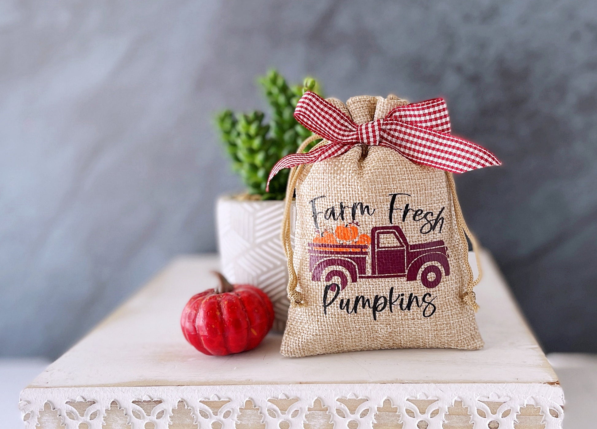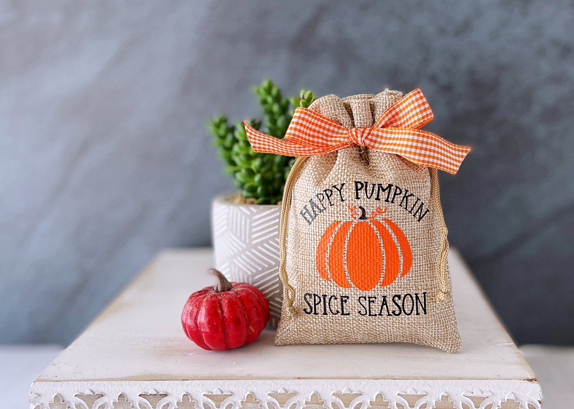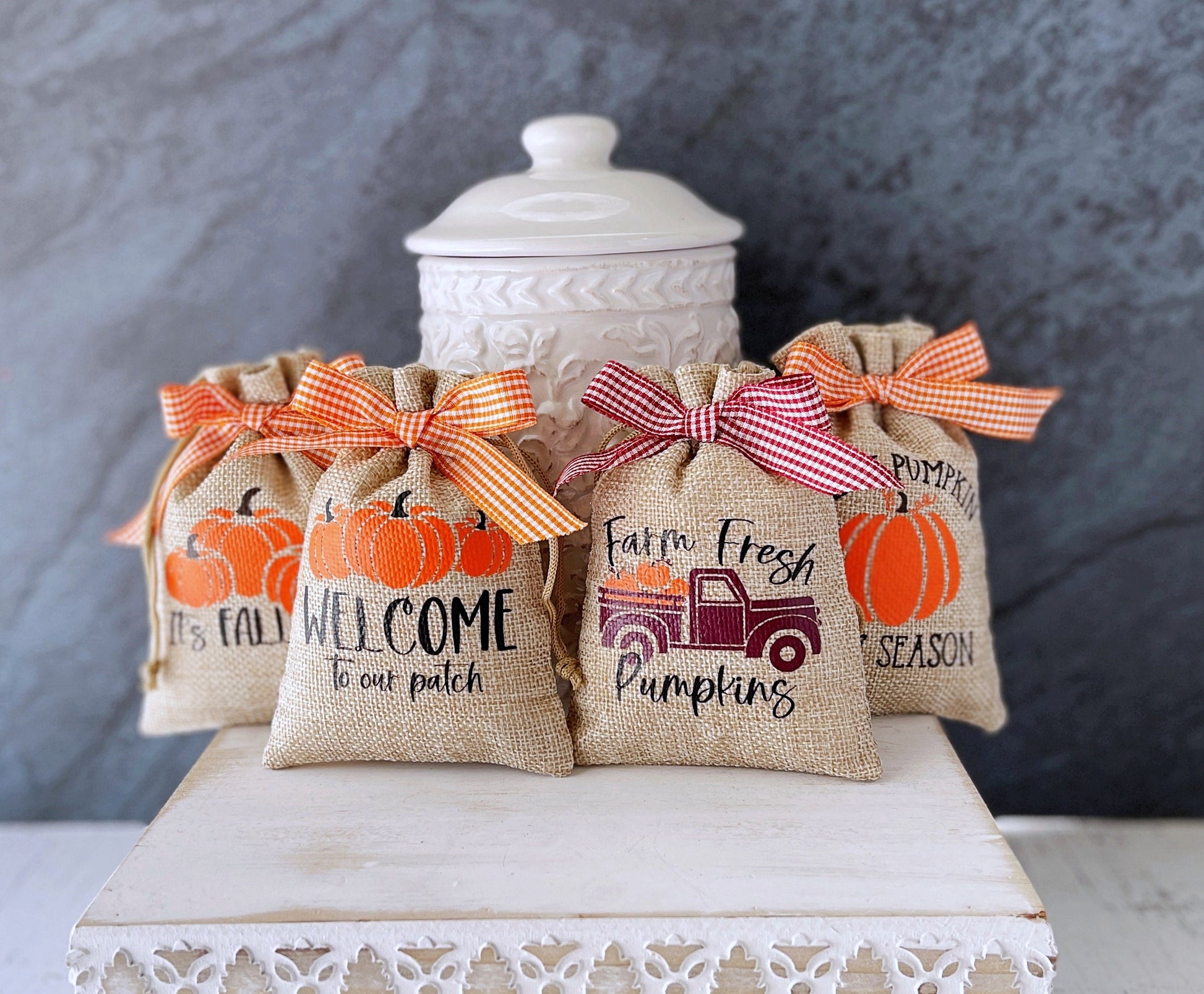 Autumn decorative mini burlap sack with pumpkin themes - Tiered tray decor
