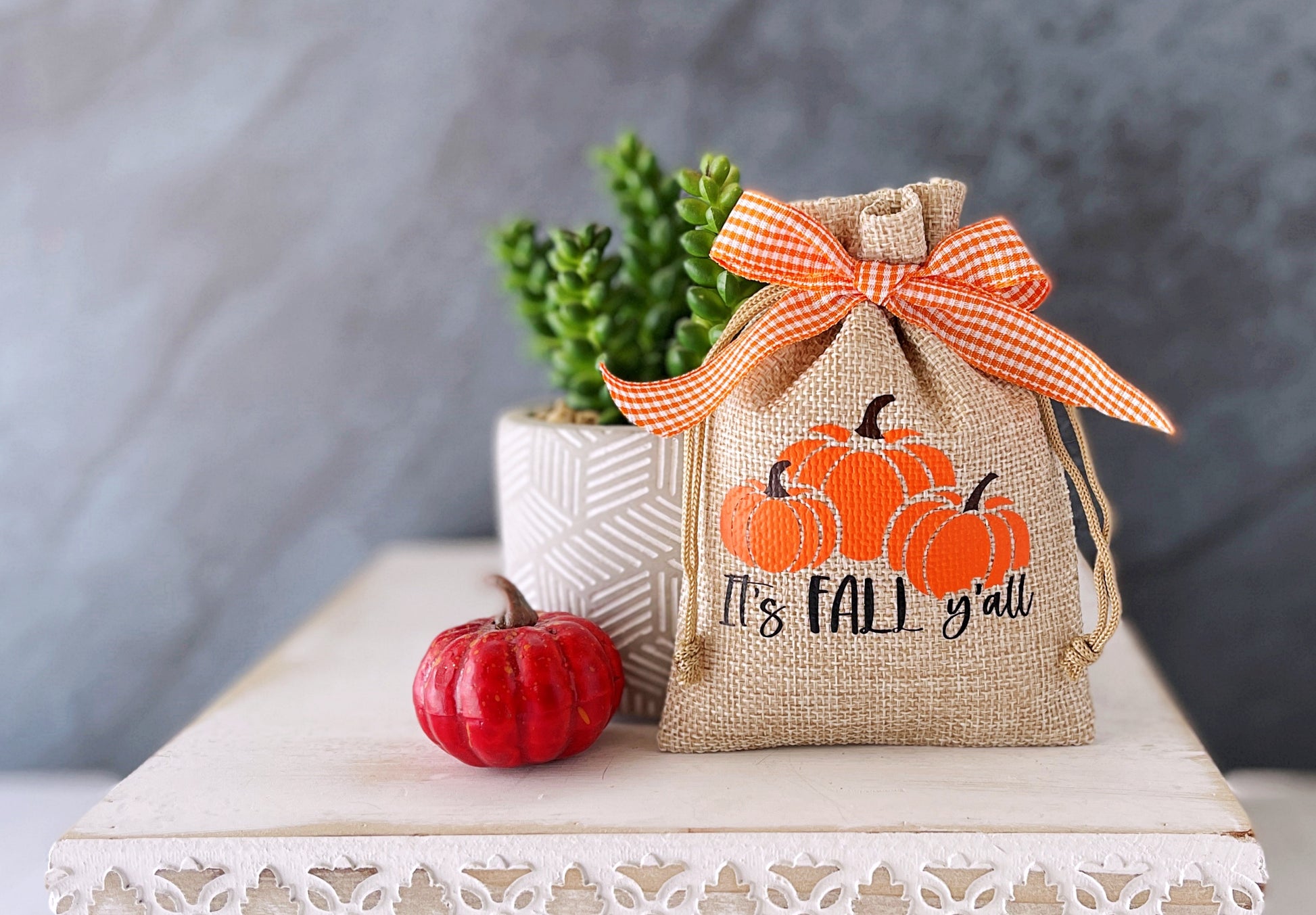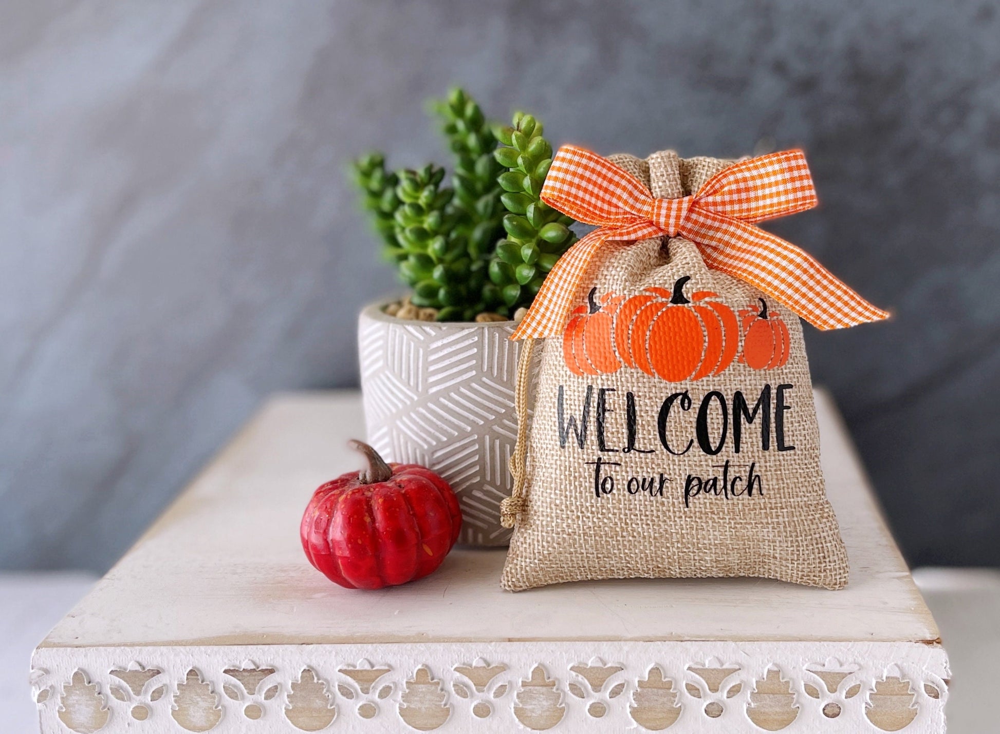 Say good-bye to boring accent pieces with this adorably autumnal mini burlap sack! Perfect for tiered trays, the festive pumpkin theme will inject some extra festiveness into your décor. Get ready to be gourd-geous!