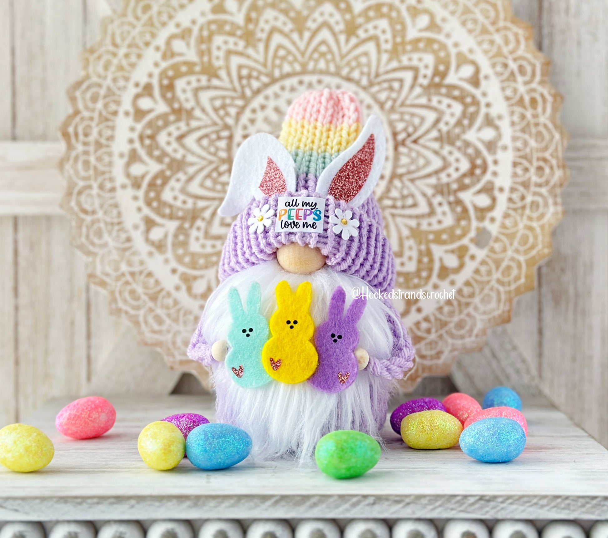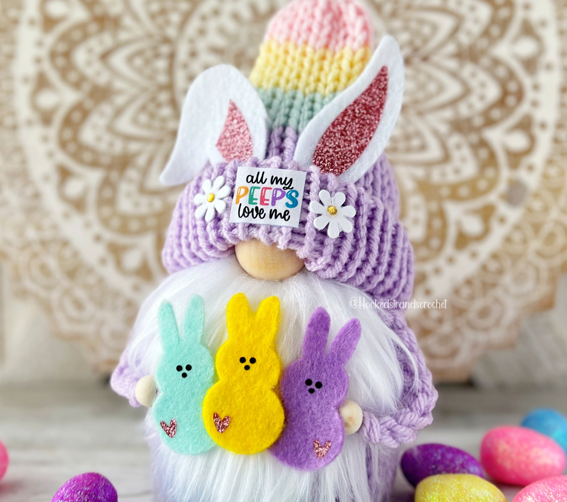 Pastel Spring Bunny Gnome for Easter Decor | Tiered Tray Decor by Hooked Strands Crochet