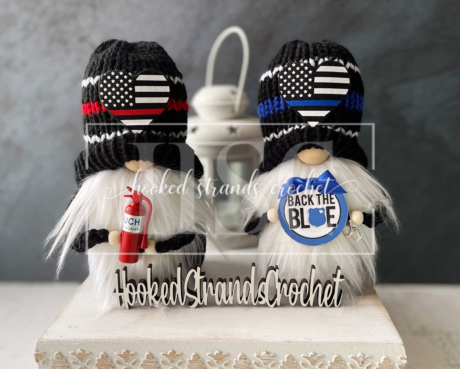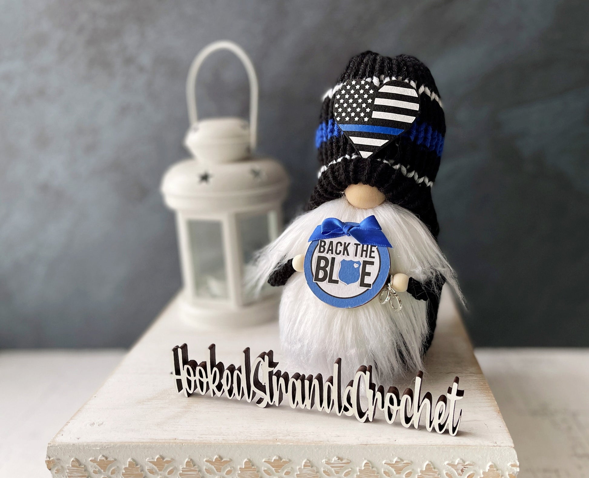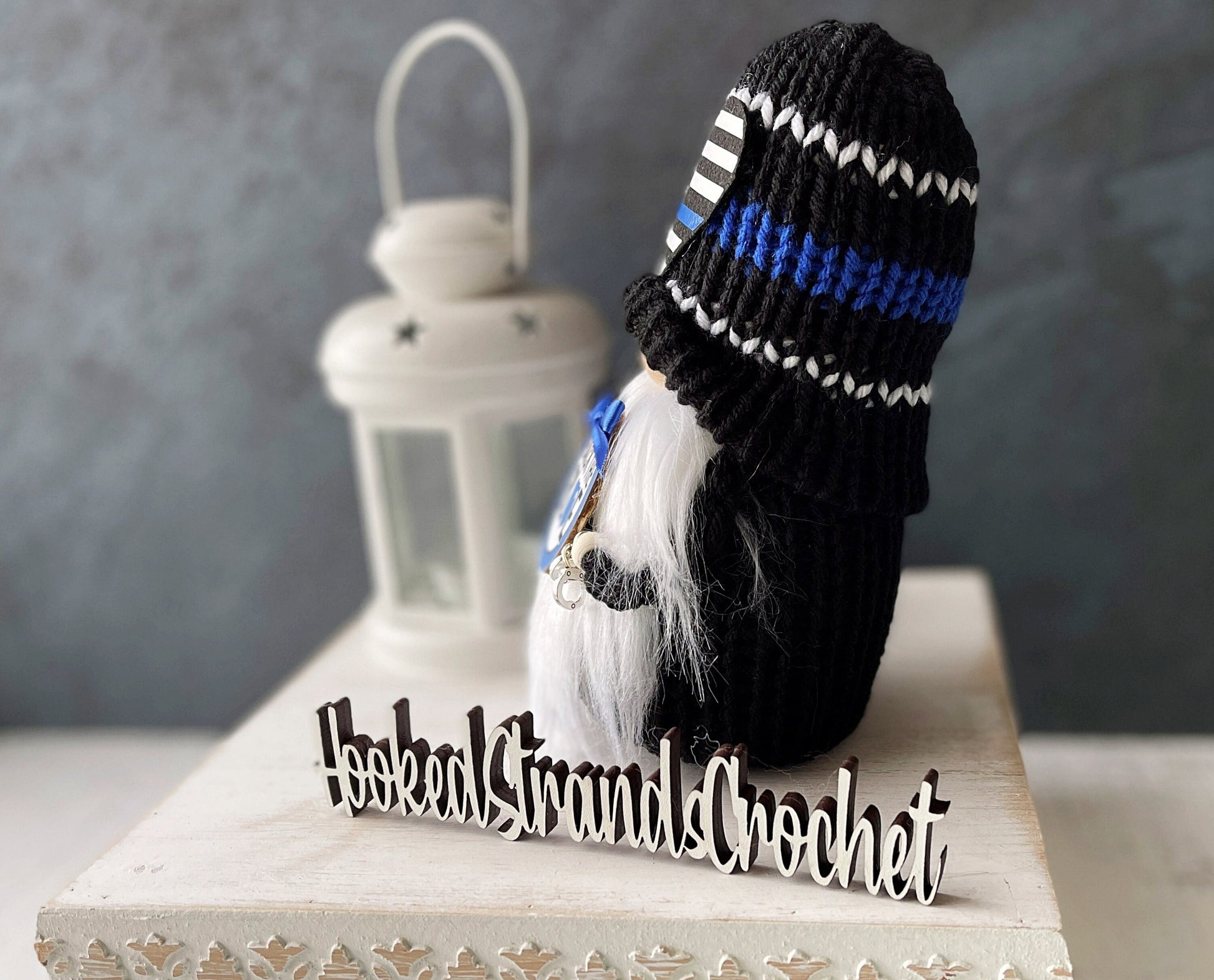 Police officer gnome, First responder gnome, Tiered tray decor, Thin blue line decor, Hero gnome, Gift idea, Knit gnome