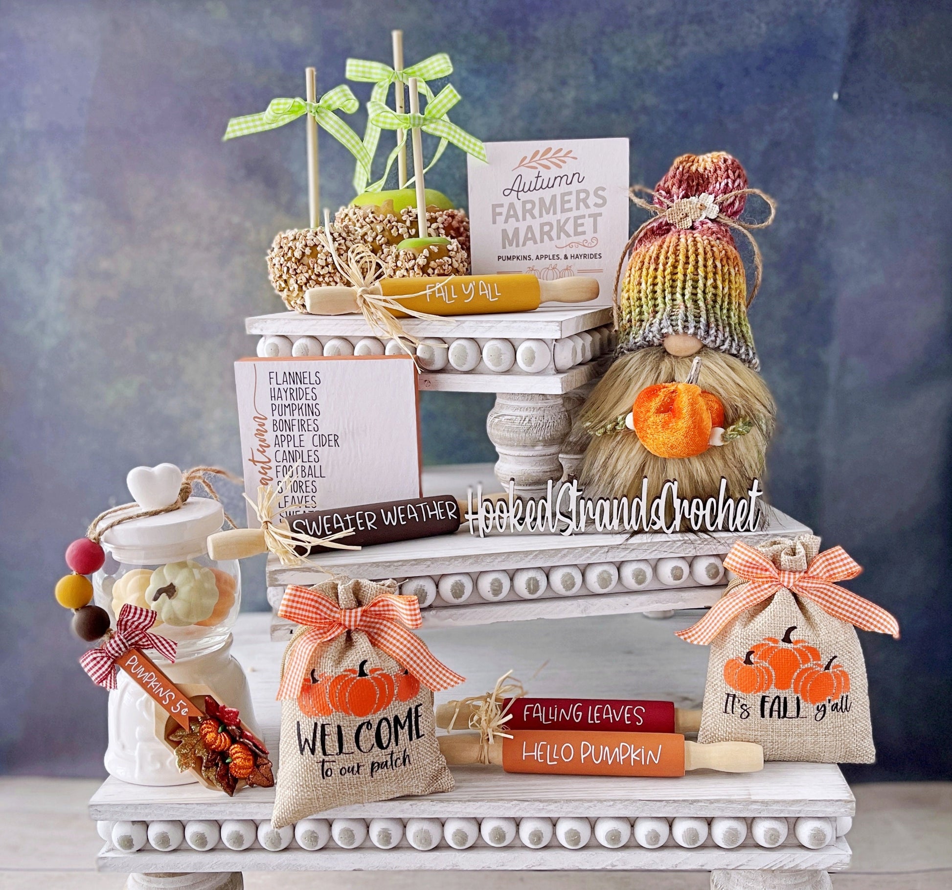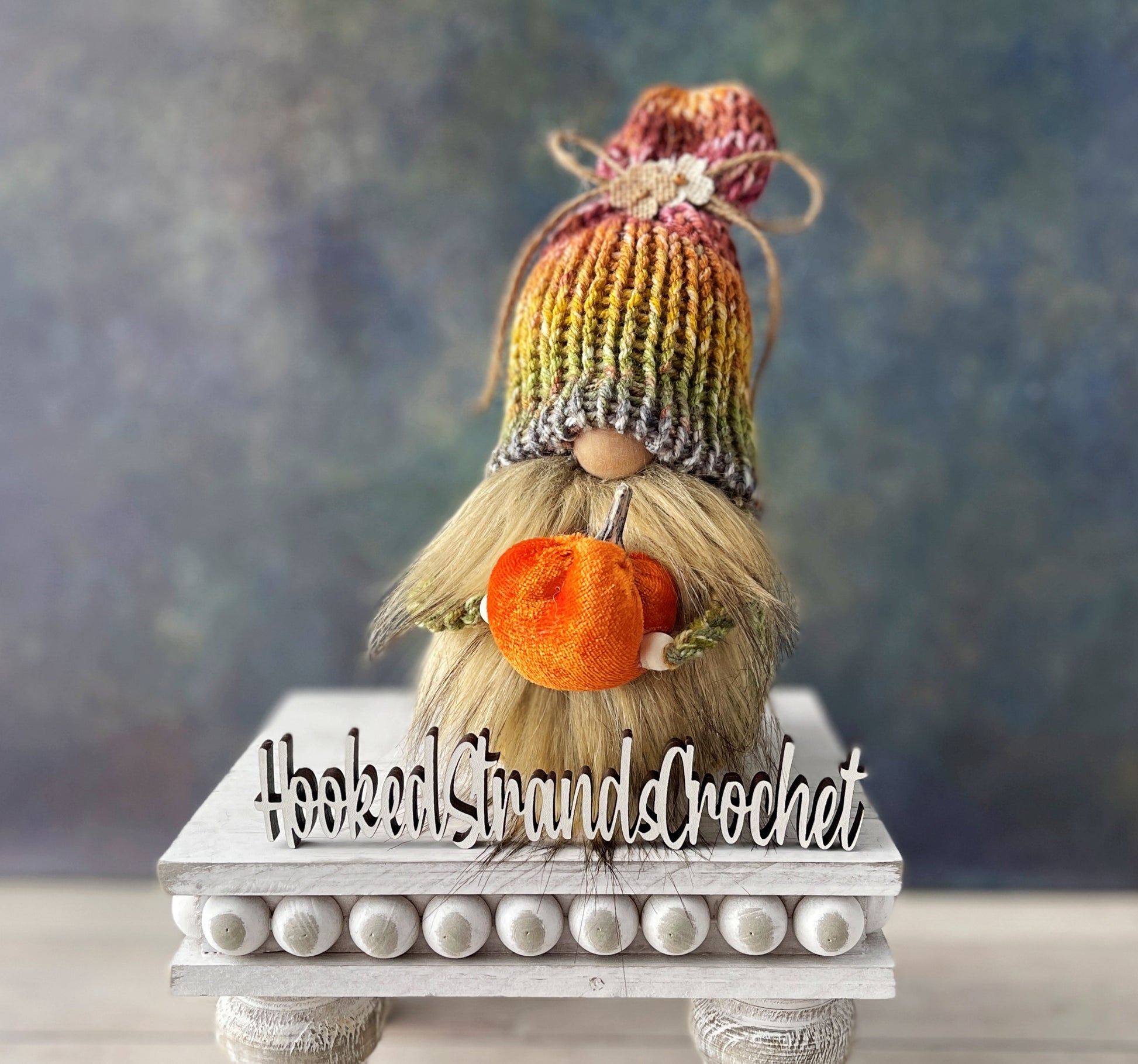 Festive fall knit gnome with pumpkin - Tiered tray decor
