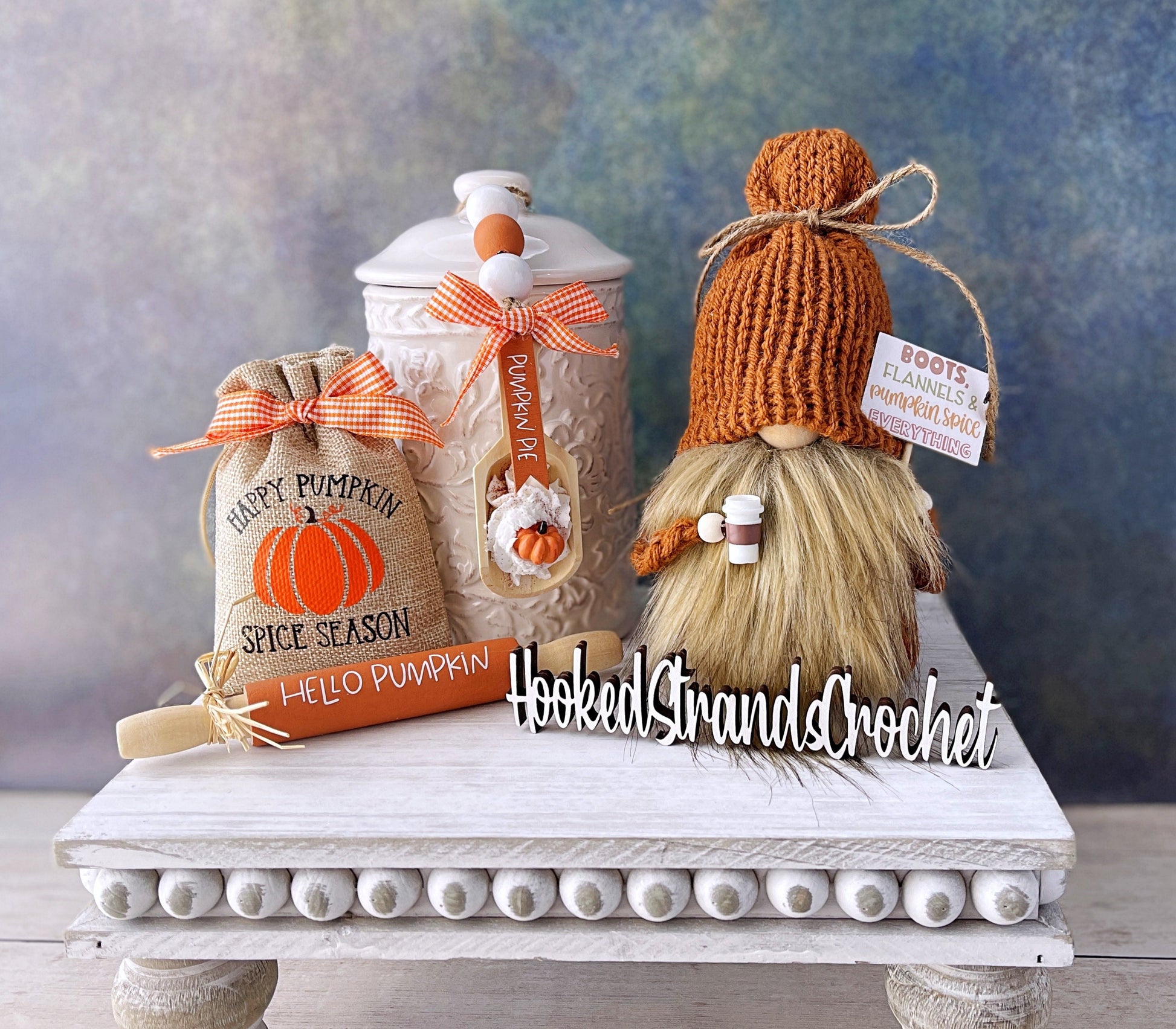 Pumpkin spice seasonal knit gnome - Tiered tray decor