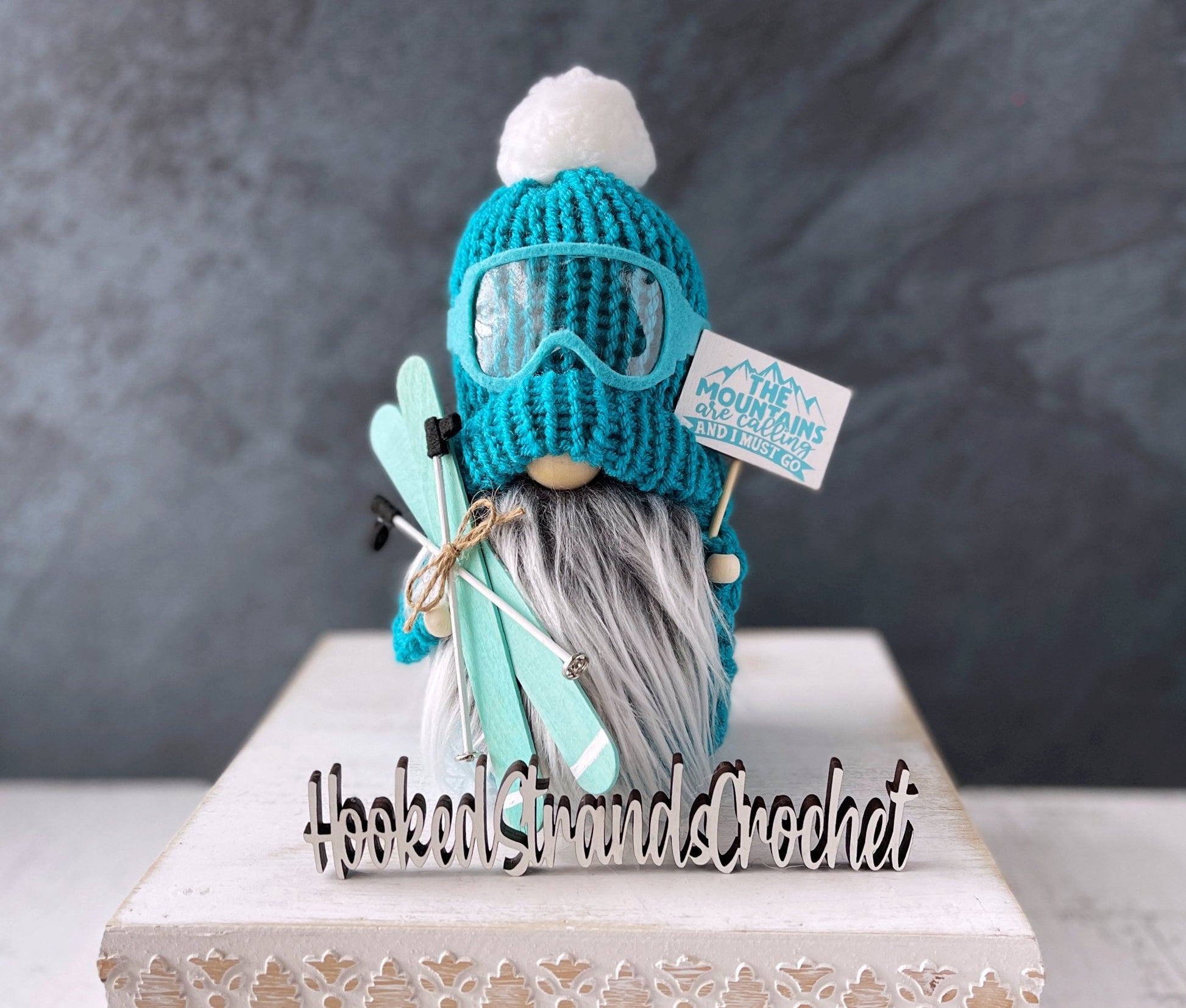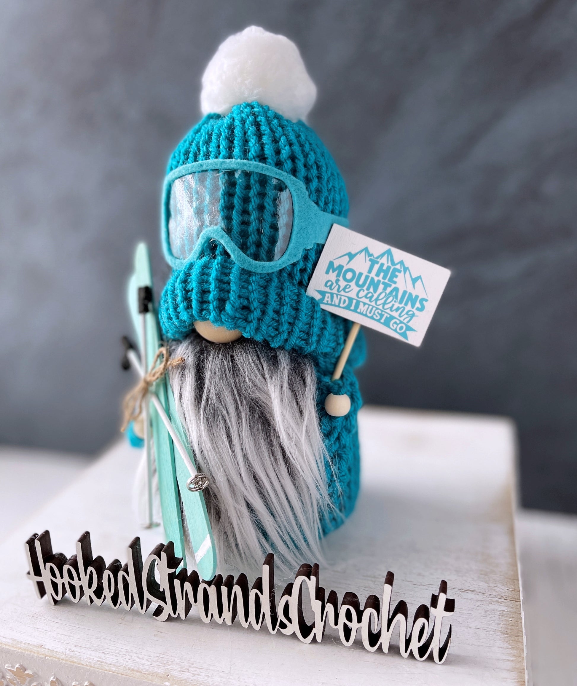 Skiing gnome, Mountains are calling, Winter gnome, Tiered tray decor, Mountains decor, Gift idea, Rustic gnome, Gnome decor,
