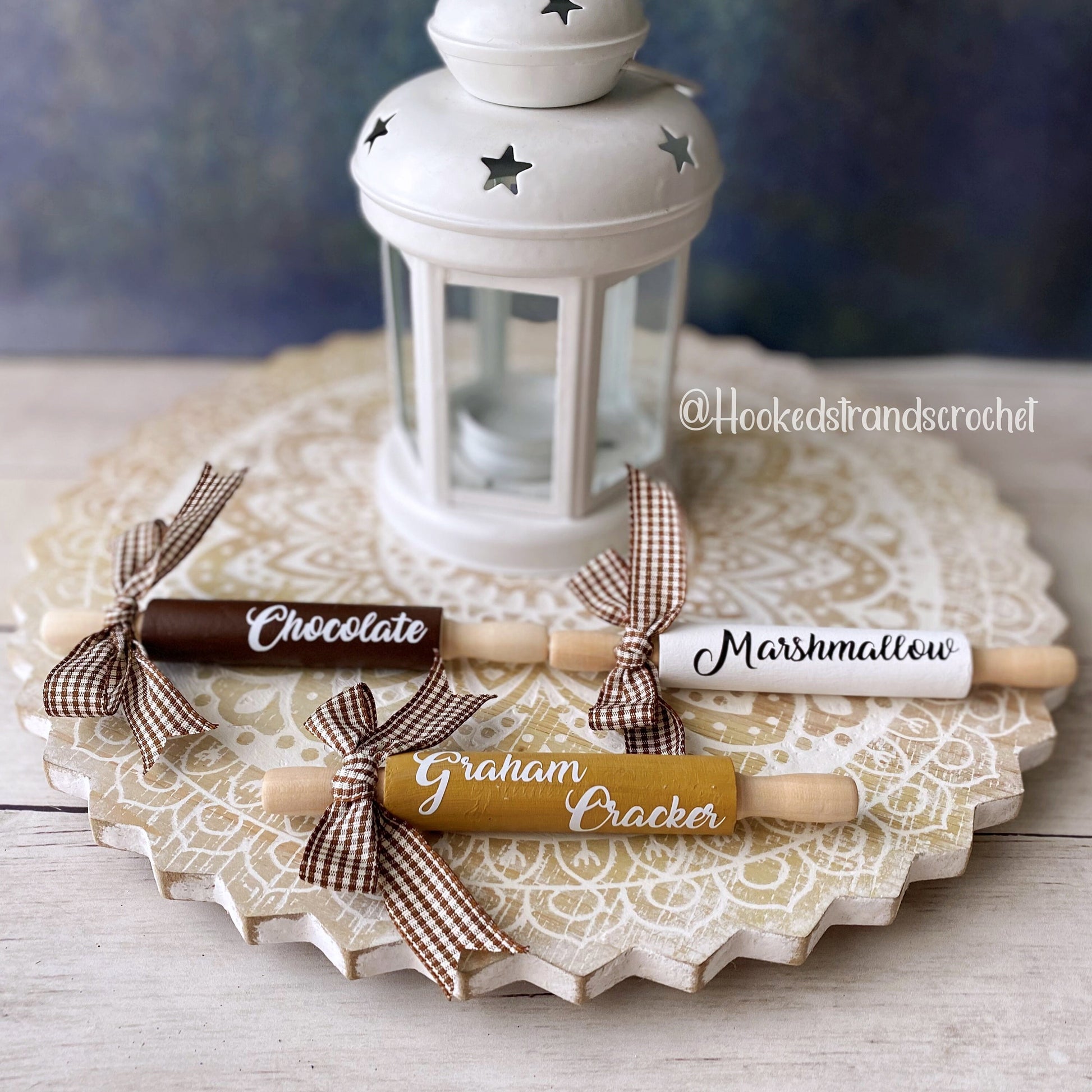 This Sweet knit S'mores gnome with marshmallow is the perfect accompaniment for your tiered trays! Delightfully hand-crafted and full of whimsy, it will bring a smile to your face like the perfect S'more would - no campfire needed!