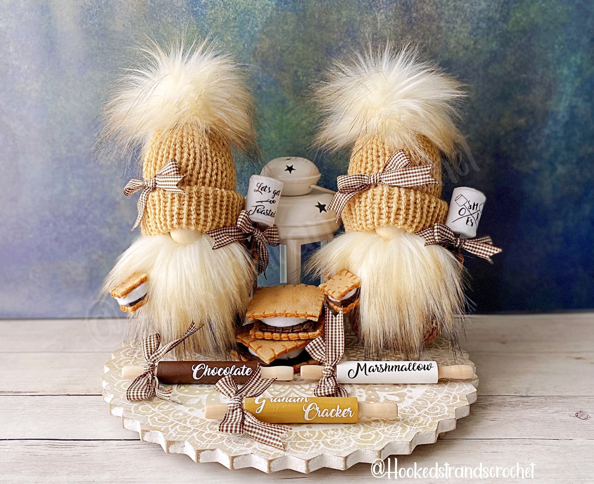 Sweet knit S'mores gnome with marshmallow - Tiered tray decor