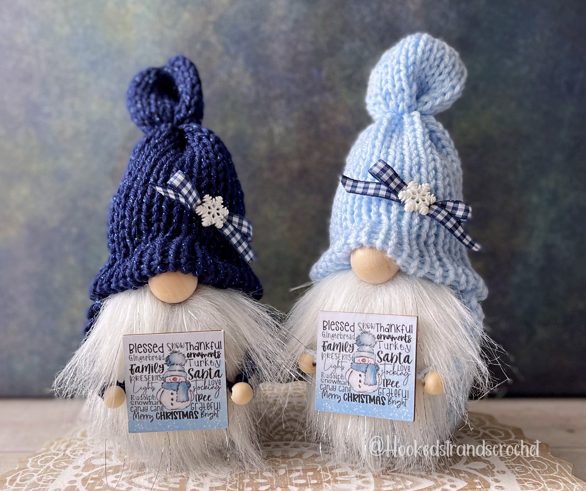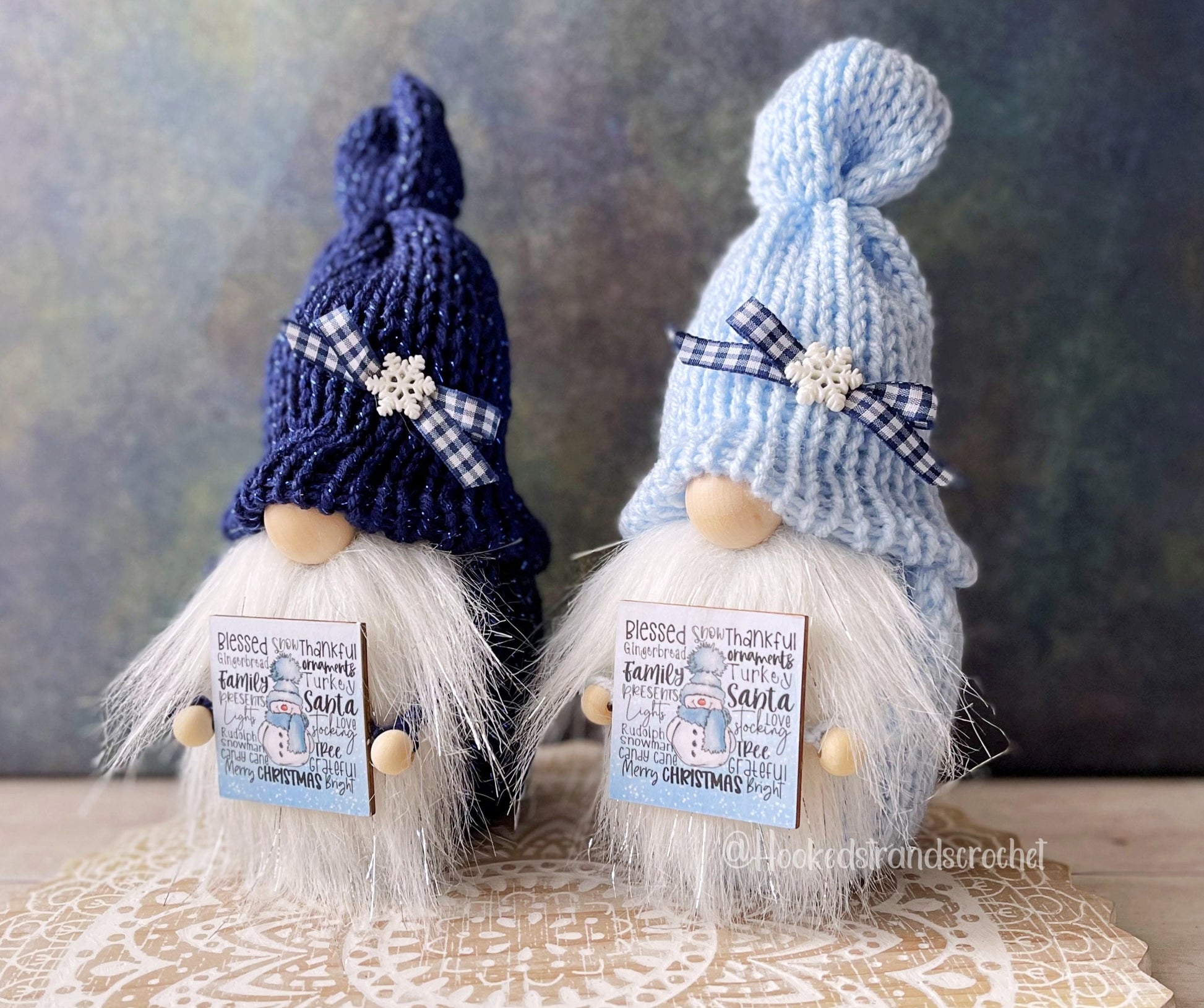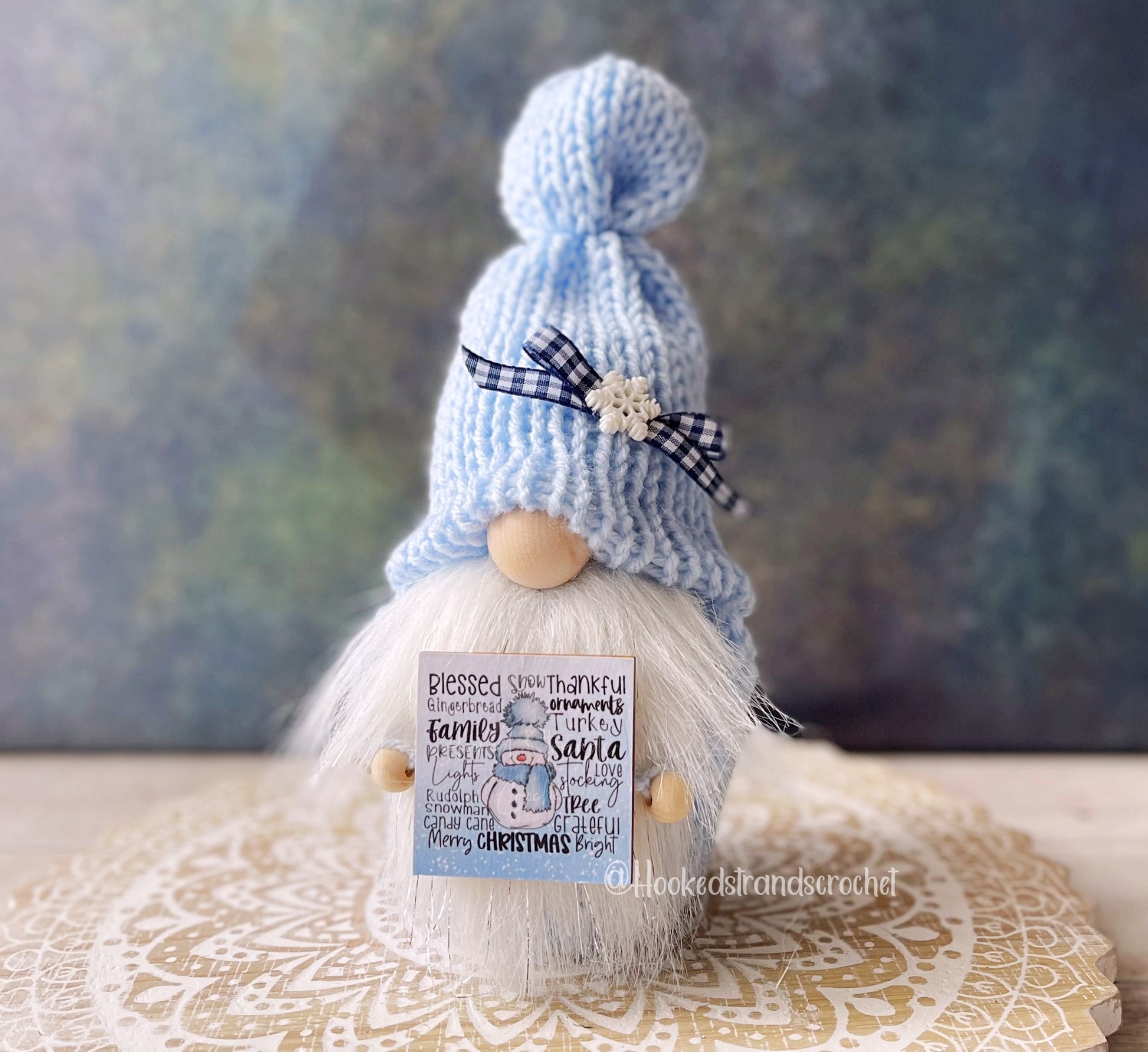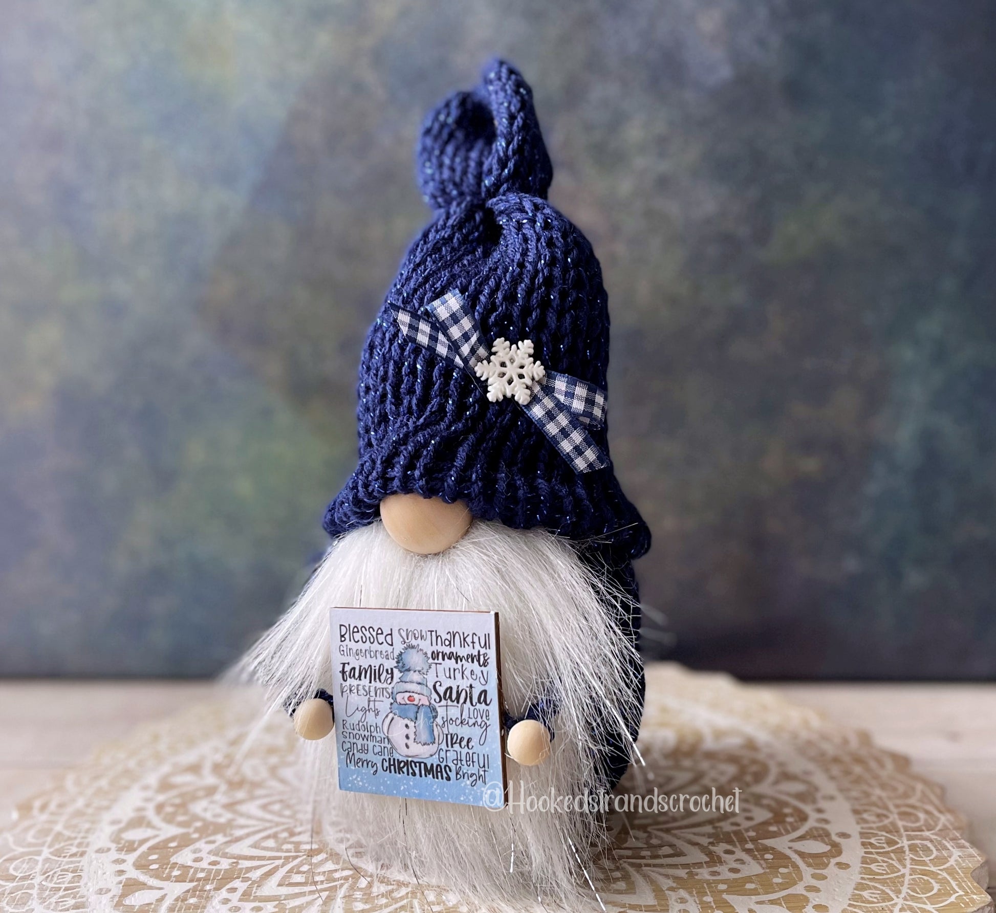 This snowman gnome is a great addition to your tiered tray decor. The Christmas gnome has a farmhouse theme and works well with your rustic decor. This winter gnome is available in two color options either dark sparkly blue or light blue. He includes a navy plaid bow and sparkly snowflake on his hat as well as a winter white beard with silver tinsel and a snowman themed sign