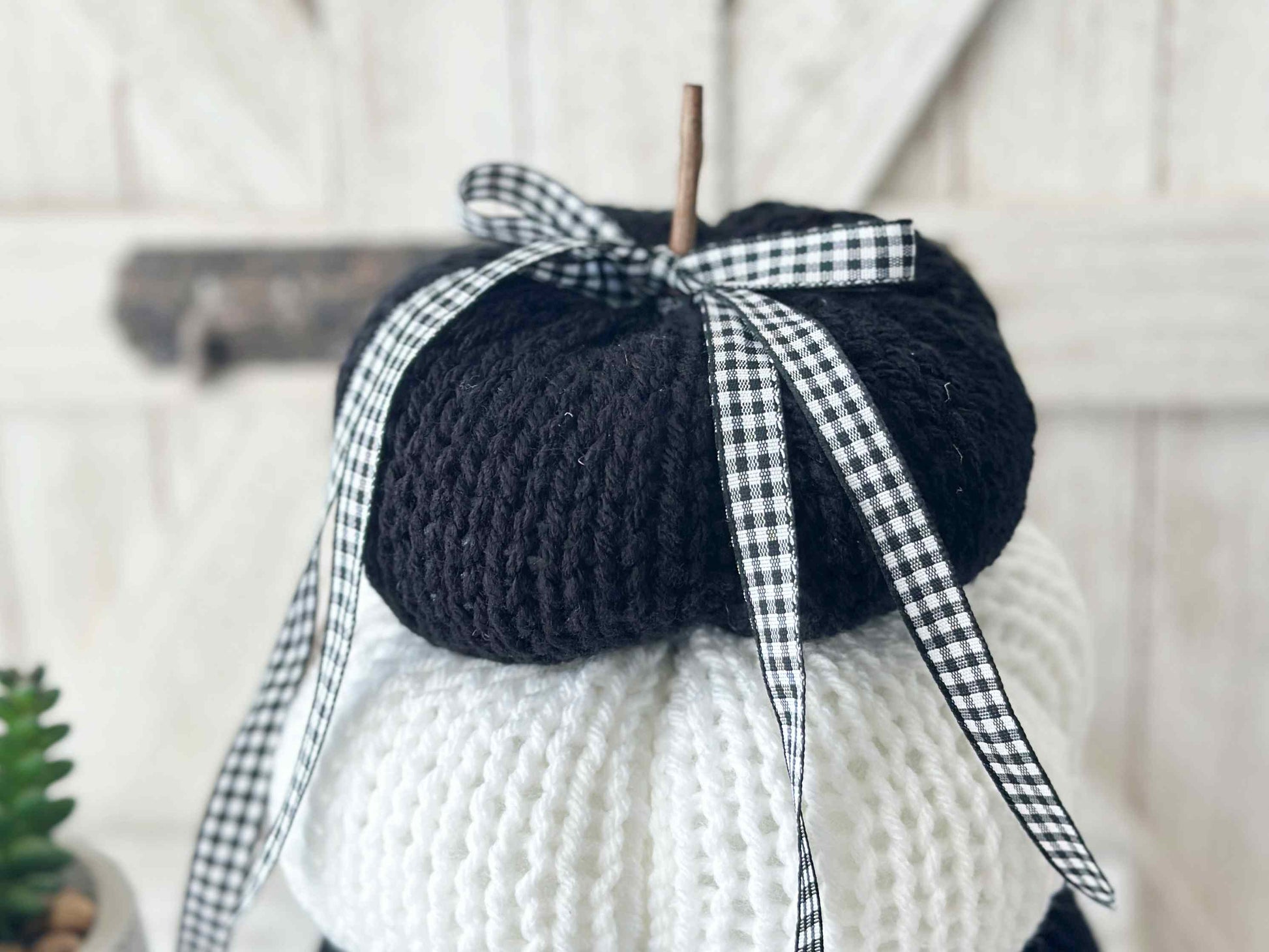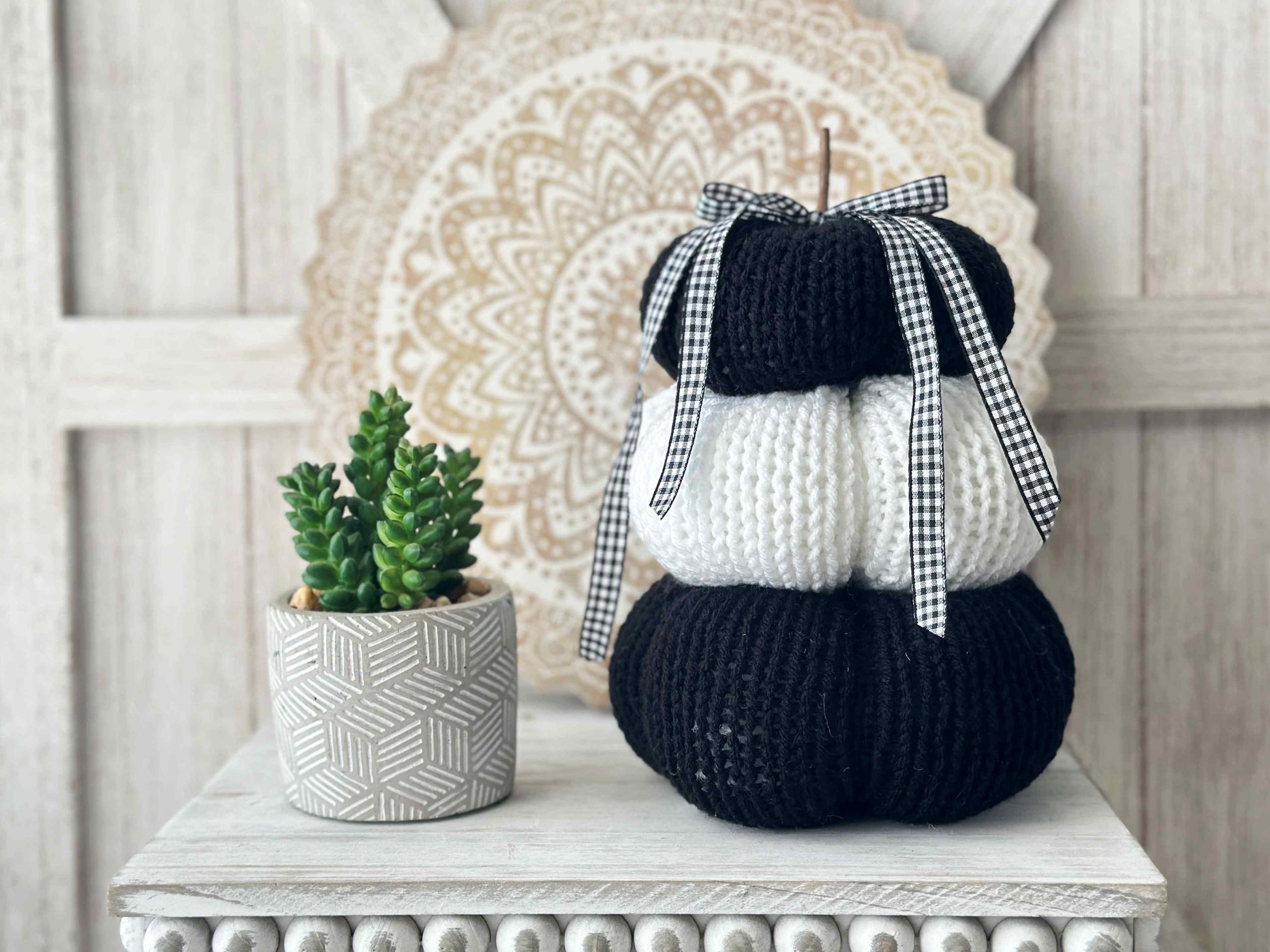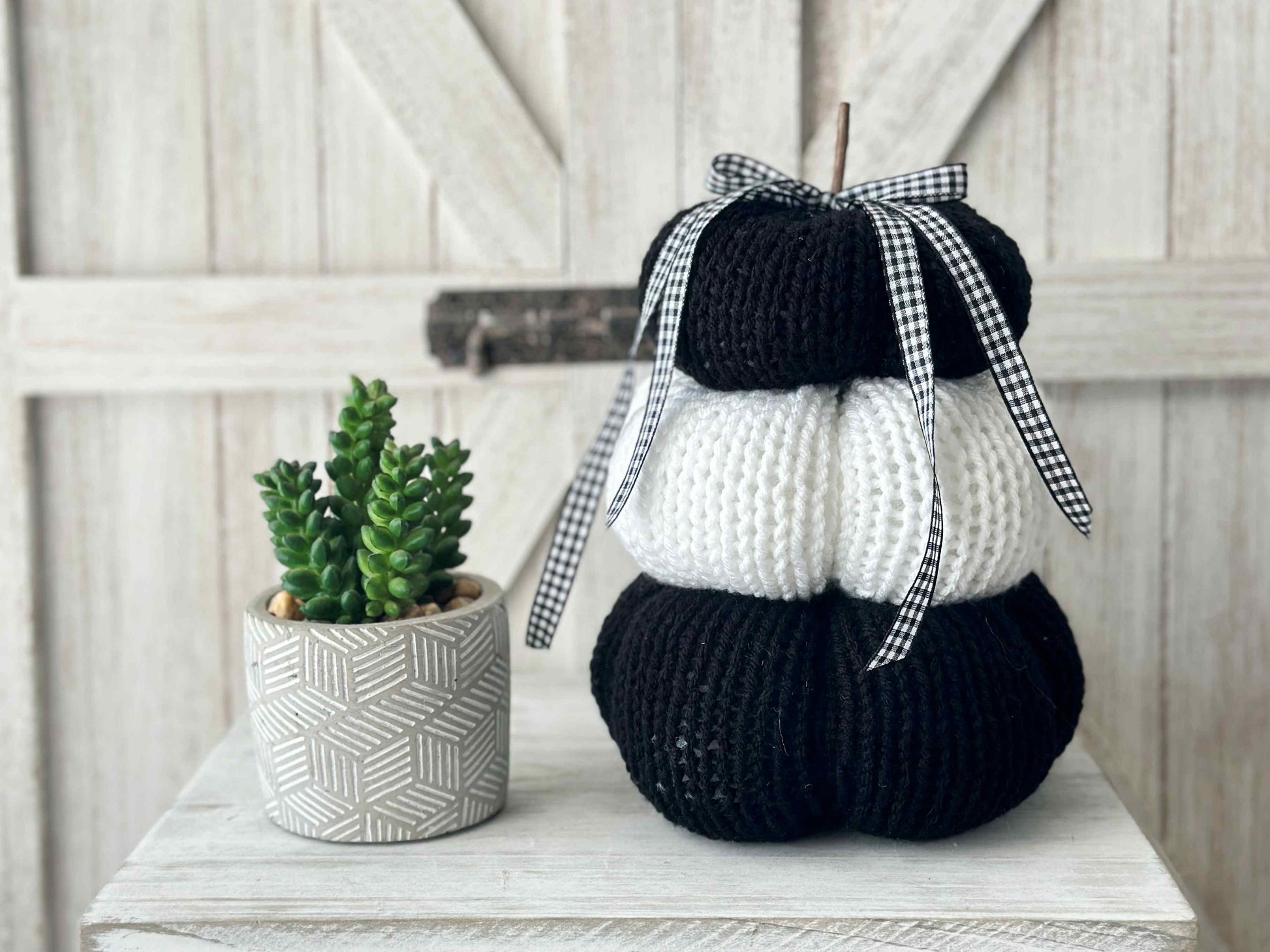 Spooky Black and White Knit Pumpkin Stack Tiered Tray Decor for Halloween