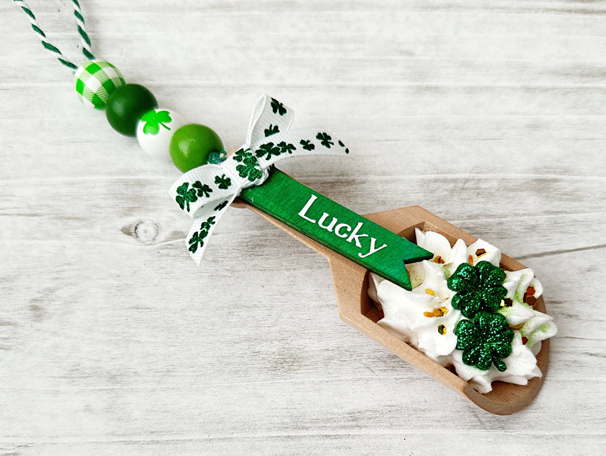 St patrick's scoop, St Paddys decor, Tiered tray decor, Decorative scoop, Table top display, Canister scoop