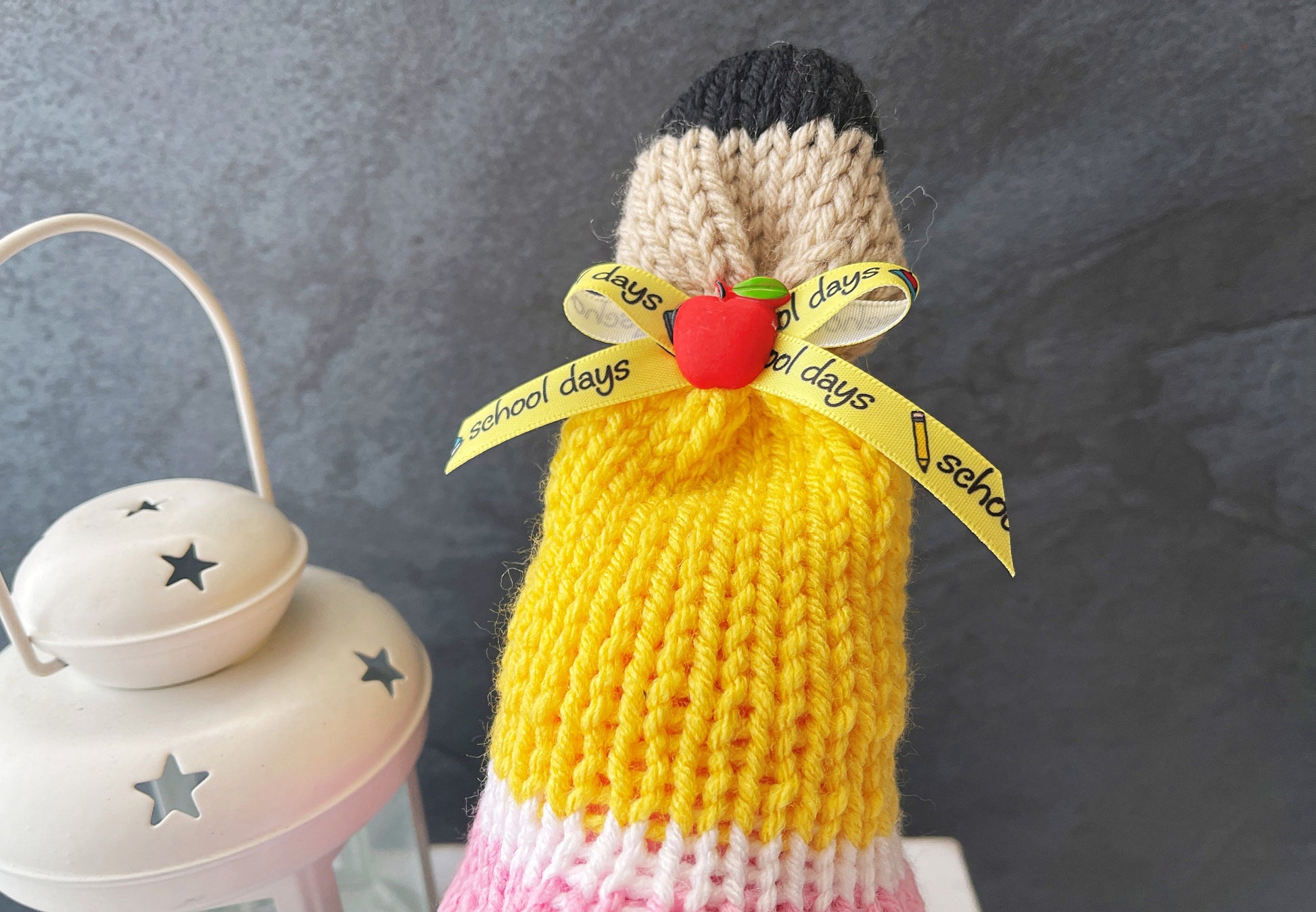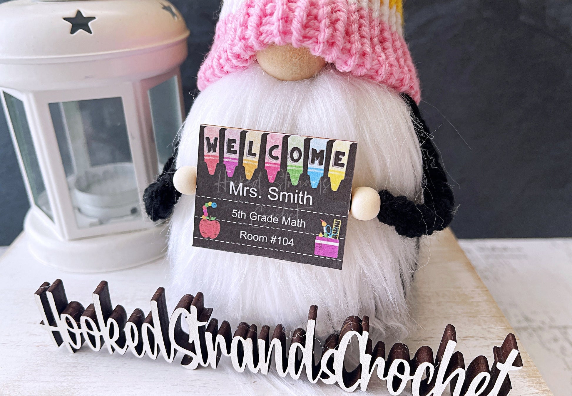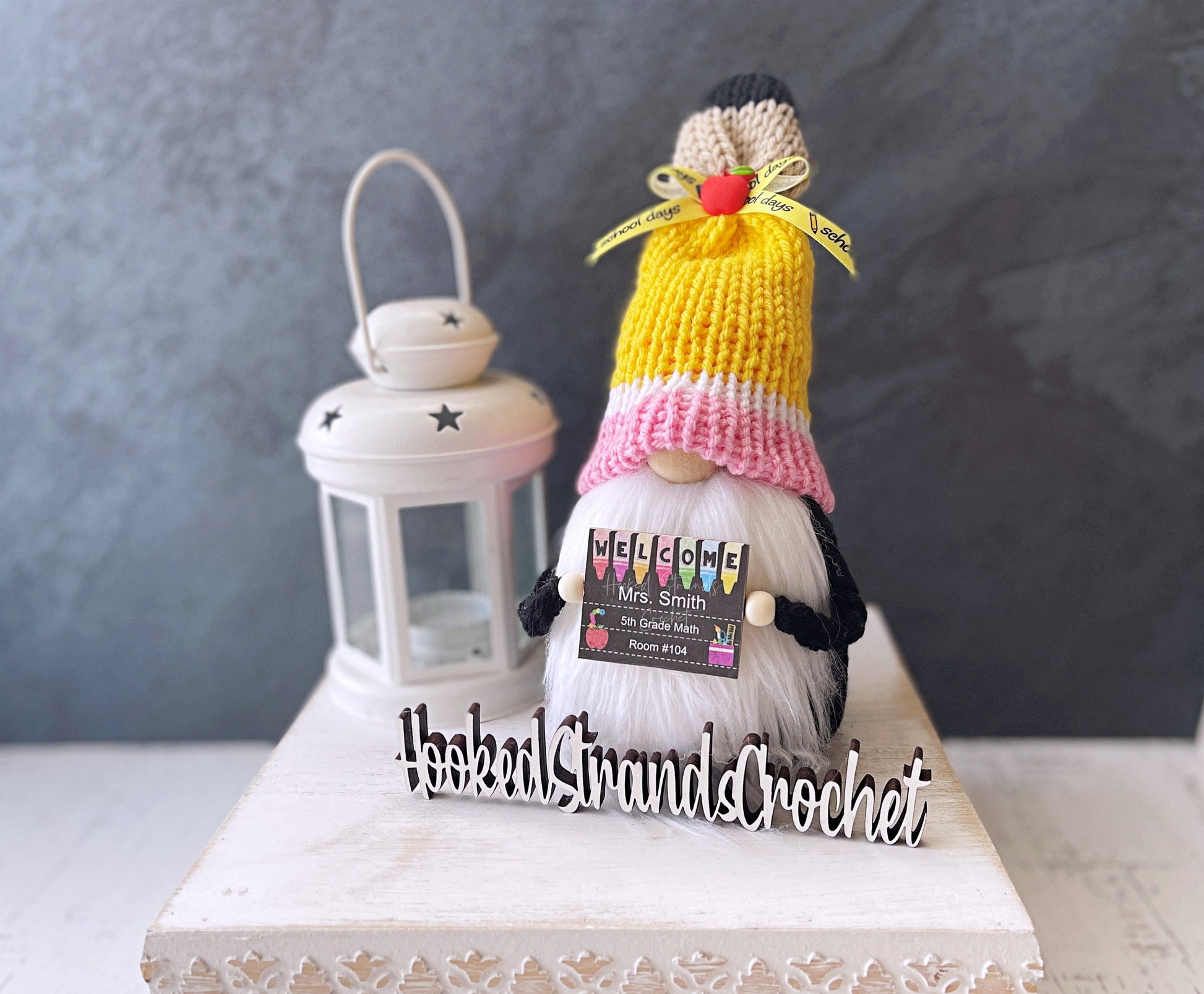 This teacher gnome is a great way to welcome students to your class! This knit gnome has a hat designed like a pencil and holds a customizable sign that welcomes students. This pencil gnome would be a great way to show your appreciation for a teacher or give as a gift!