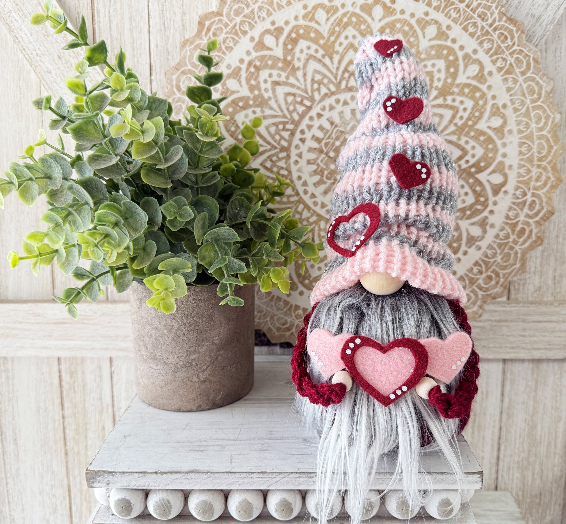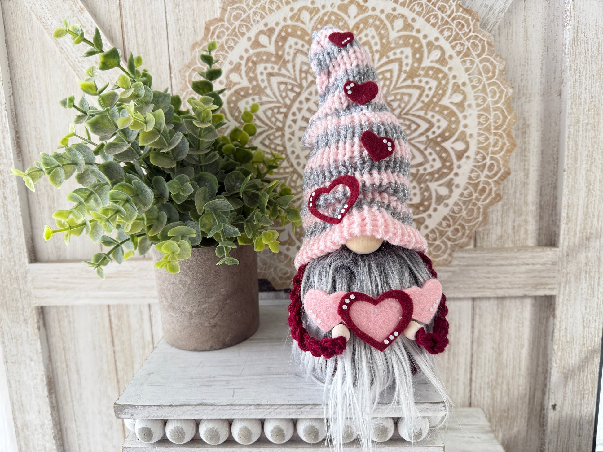 Valentine's Day Heart Gnome with Slouchy Hat - Tiered Tray Decor