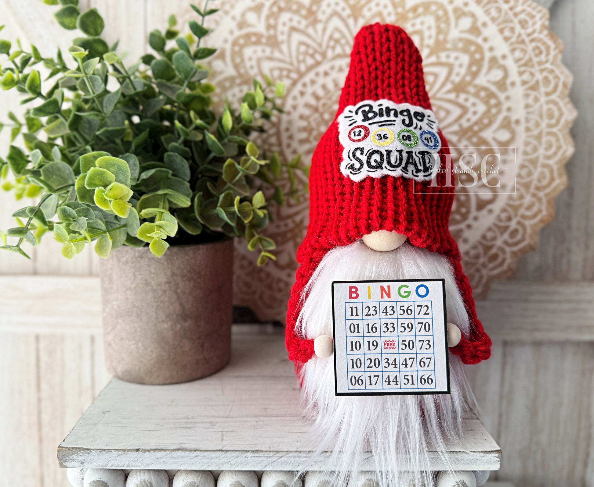 Add a touch of whimsy to your home decor with this charming Bingo gnome. Perfect for the Bingo addict in your life, this gnome makes a fun and unique gift idea. Ideal for tiered tray decor or simply as a standalone piece. Handcrafted with love, this gnome will bring a smile to any Bingo lover's face.