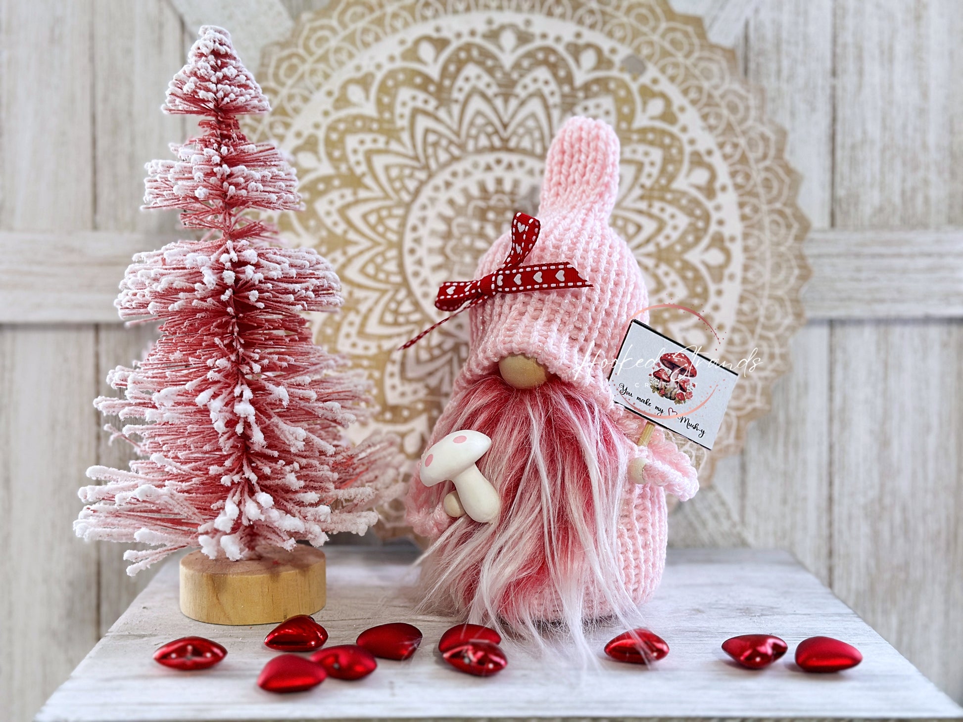 Introducing the Pink Valentine Mushroom Gnome - a whimsical addition to your tiered tray decor! Handcrafted by Hooked Strands Crochet, this adorable gnome is perfect for adding a touch of charm and love to your space. Made with attention to detail, the pink hue of the gnome complements the Valentine's Day theme flawlessly. Whether you're looking to spruce up your home or gift it to a loved one, this Pink Valentine Mushroom Gnome is sure to brighten up any corner with its sweet and enchanting presence.
