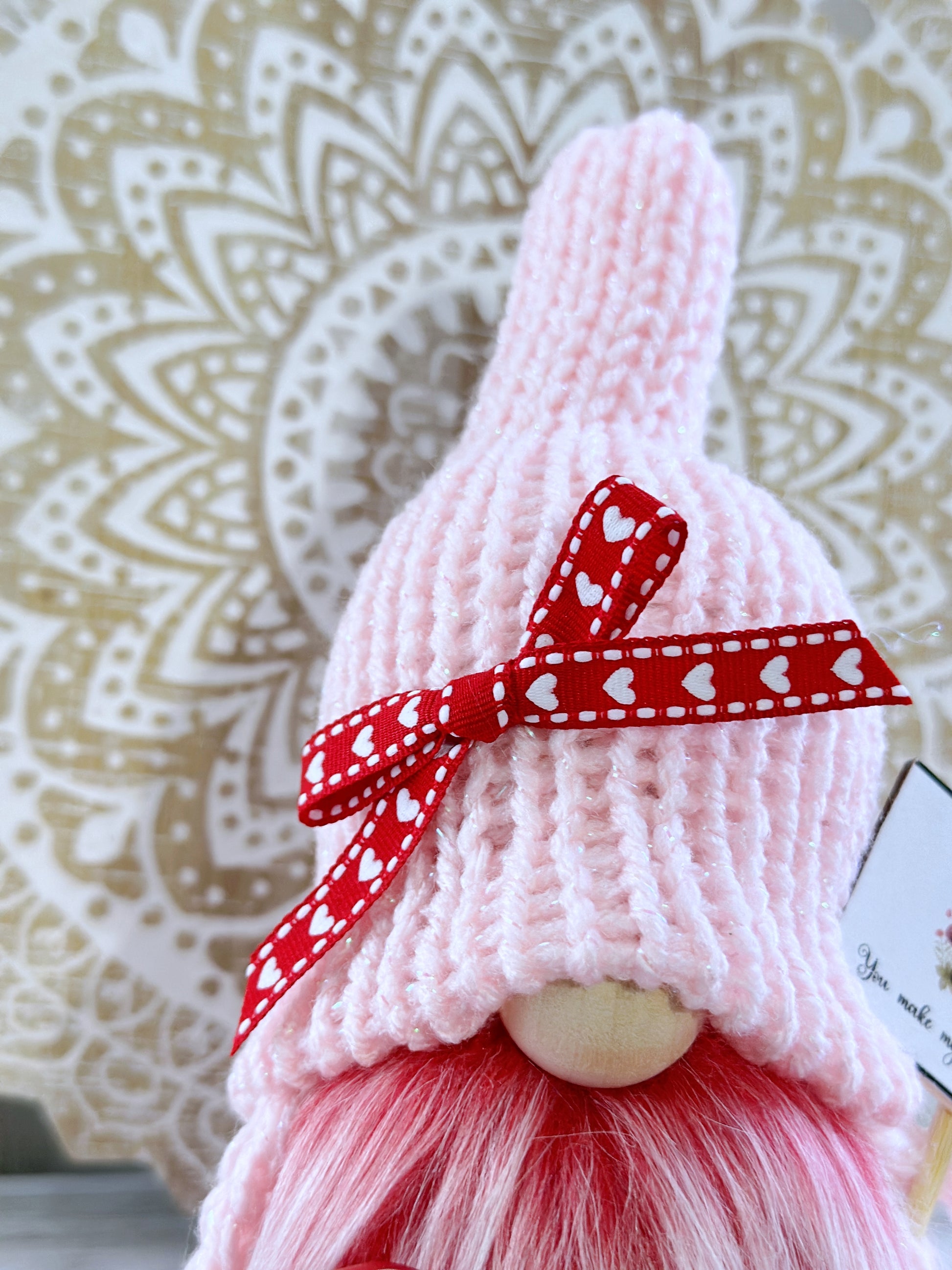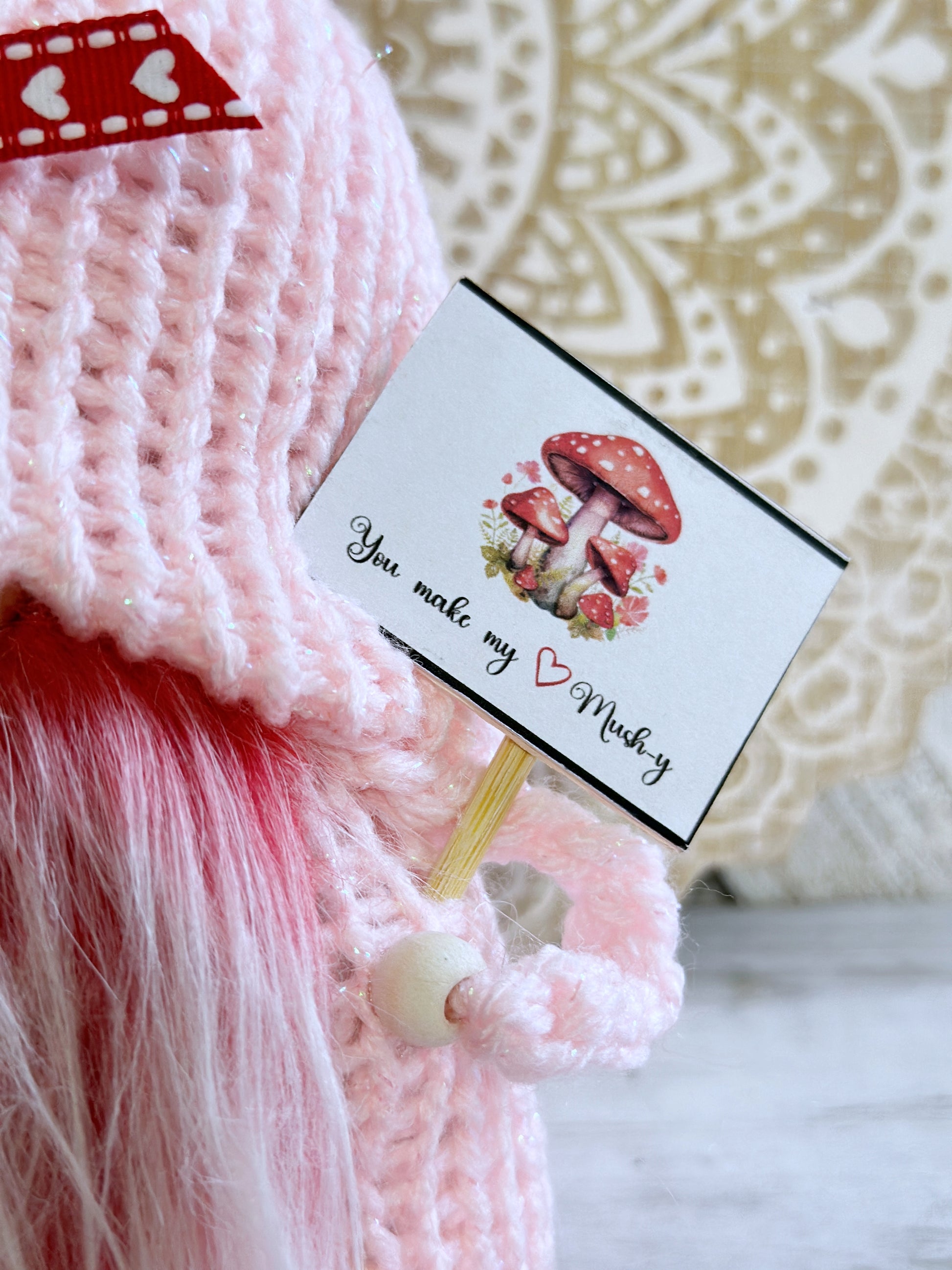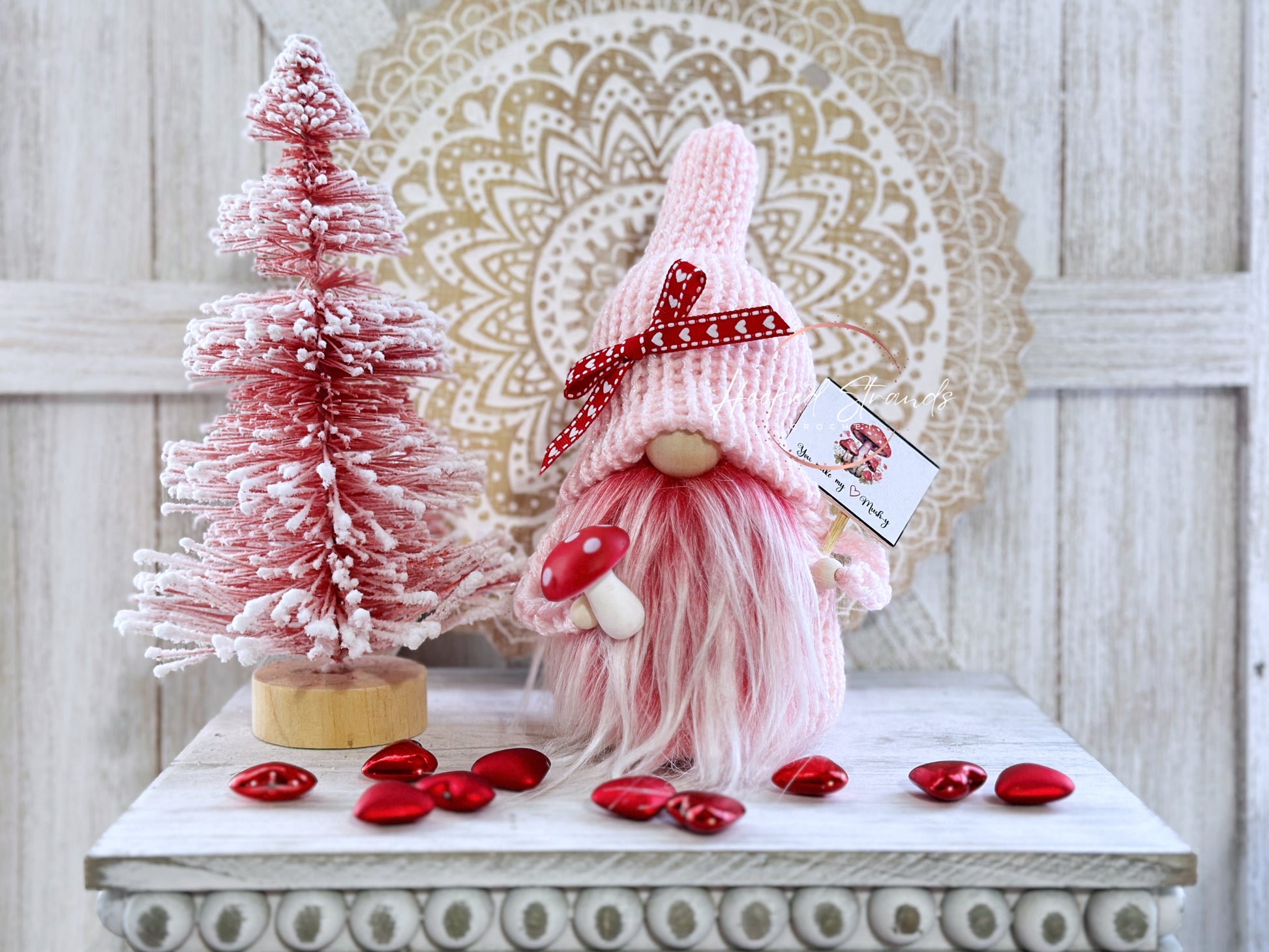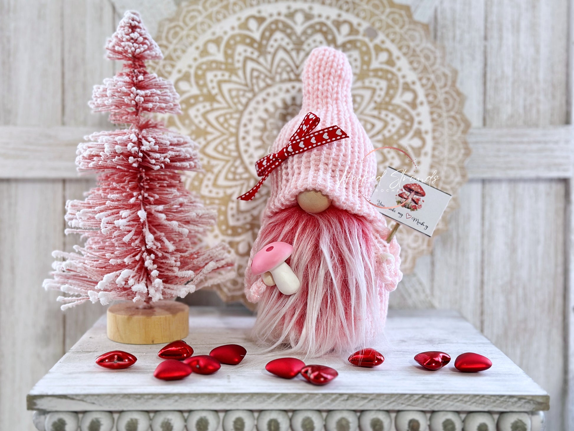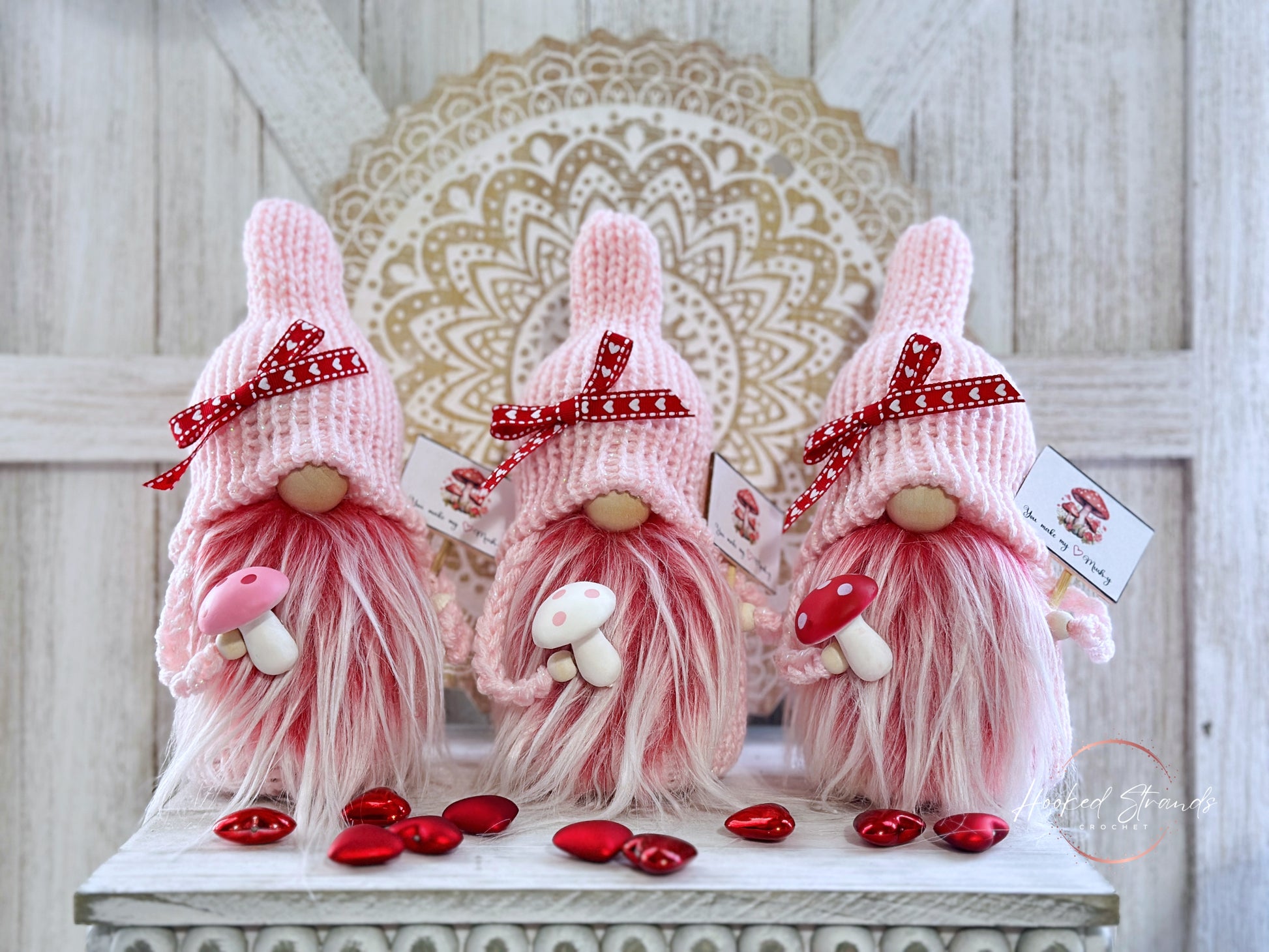 Whimsical Pink Valentine Mushroom Gnome - Delightful Tiered Tray Decor by Hooked Strands Crochet