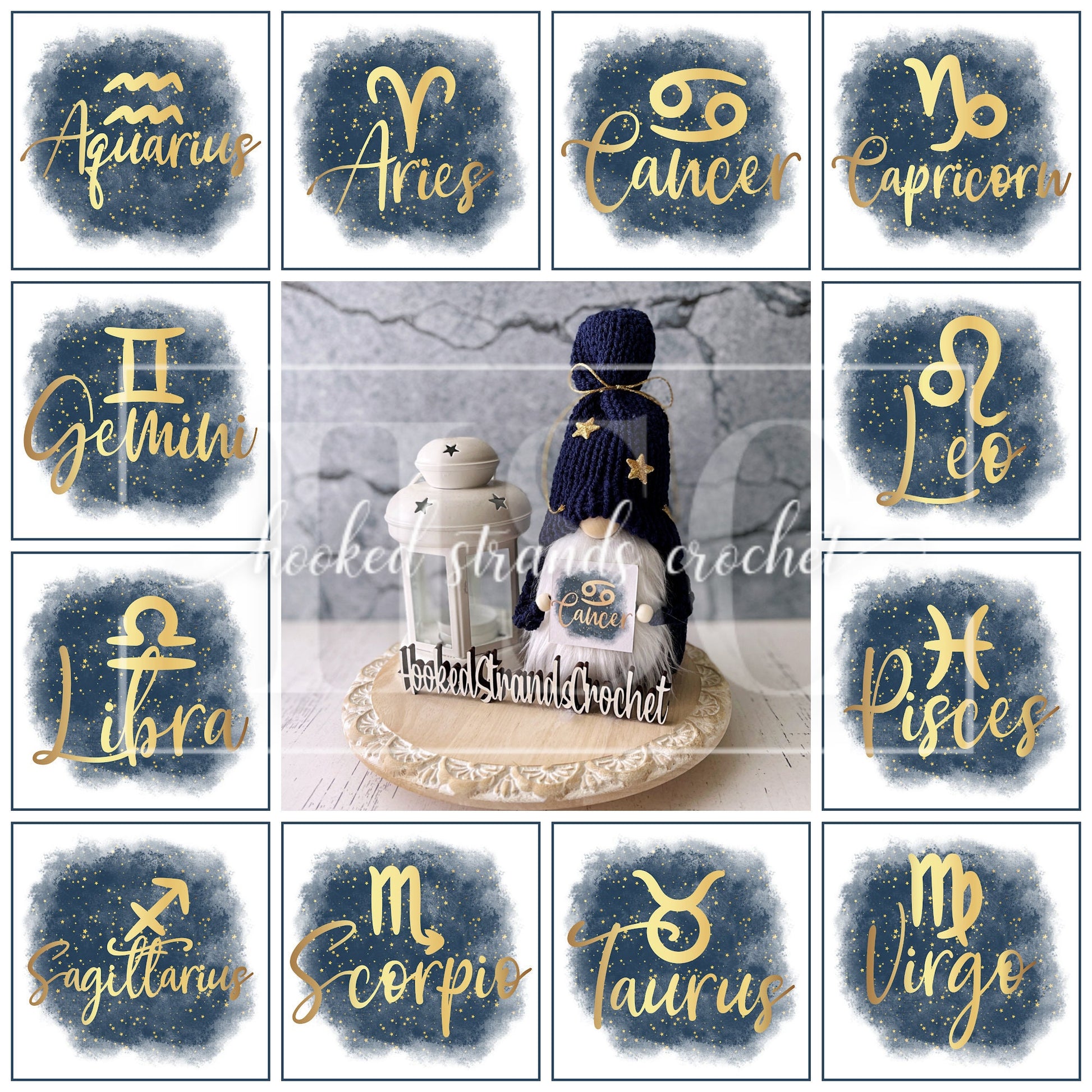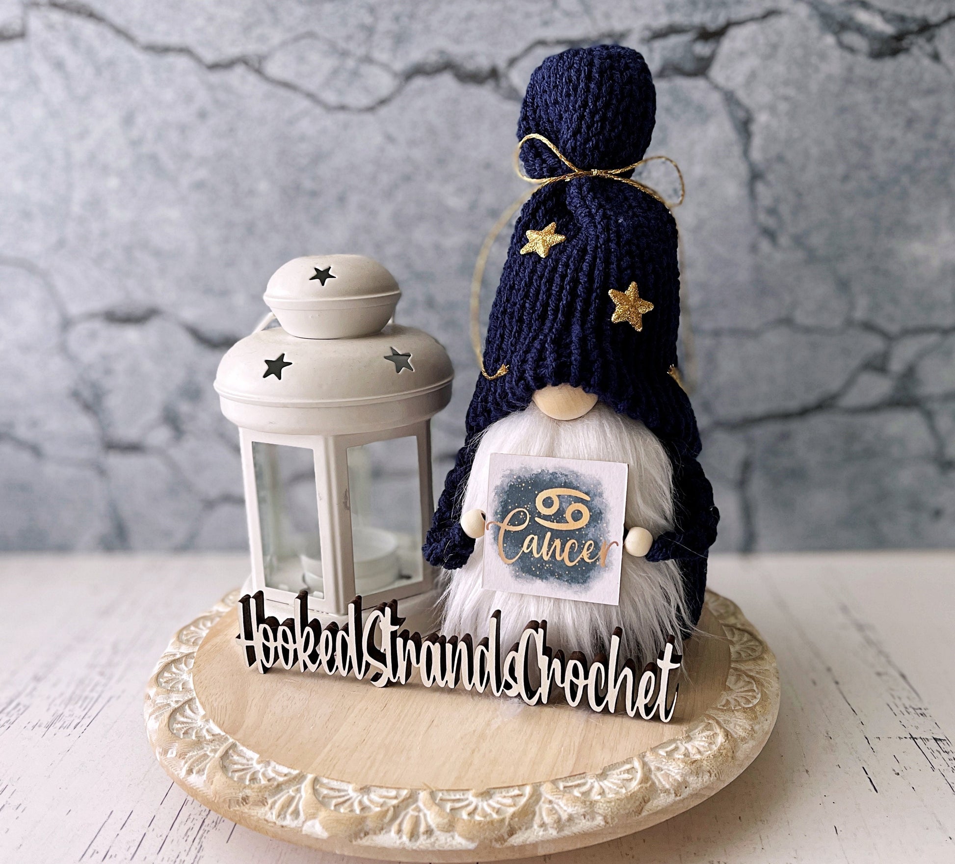 Zodiac gnome, Astrology gnome, Rustic gnome, Tiered tray decor, Gnome decor, Swedish tomte, Knit gnome,